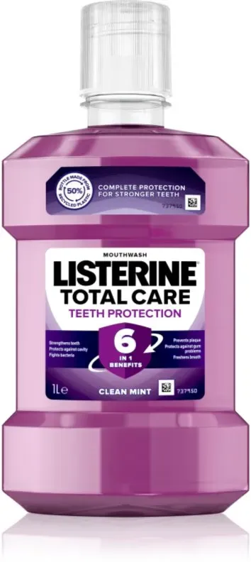 Verfügbarkeit: 1-2 Werktage - 9,80 €/1L - Kategorie: Zahnpflegeartikel - Listerine - Listerine Total Care Teeth Protection, 1000 ml, Mundwässer und Mundsprays Unisex, Das Mundwasser Listerine Total Care Clean Mint erfrischt nicht nur Ihren Atem, sondern bekämpft auch Zahnbelag und hilft dabei, das Zahnfleisch gesund zu erhalten. Eigenschaften: wirkt gegen Karies schützt vor Zahnbelag vernichtet Bakterien stärkt den Zahnschmelz hält das Zahnfleisch gesund sorgt für frischen Atem Anwendung: Nach dem Zähneputzen spülen Sie den Mund mit dem Mundwasser in der auf der Verpackung angegebenen Zeit aus und spucken es dann aus. - 9,80 Euro bei Notino - gefunden von billiger.de Dieses Angebot ist mit 13.10 Euro für 1000 ml Listerine Total Care eine gute Wahl für eine große Flasche. Liki24.de Total Care Mundspülung, 1000 ml, Listerine