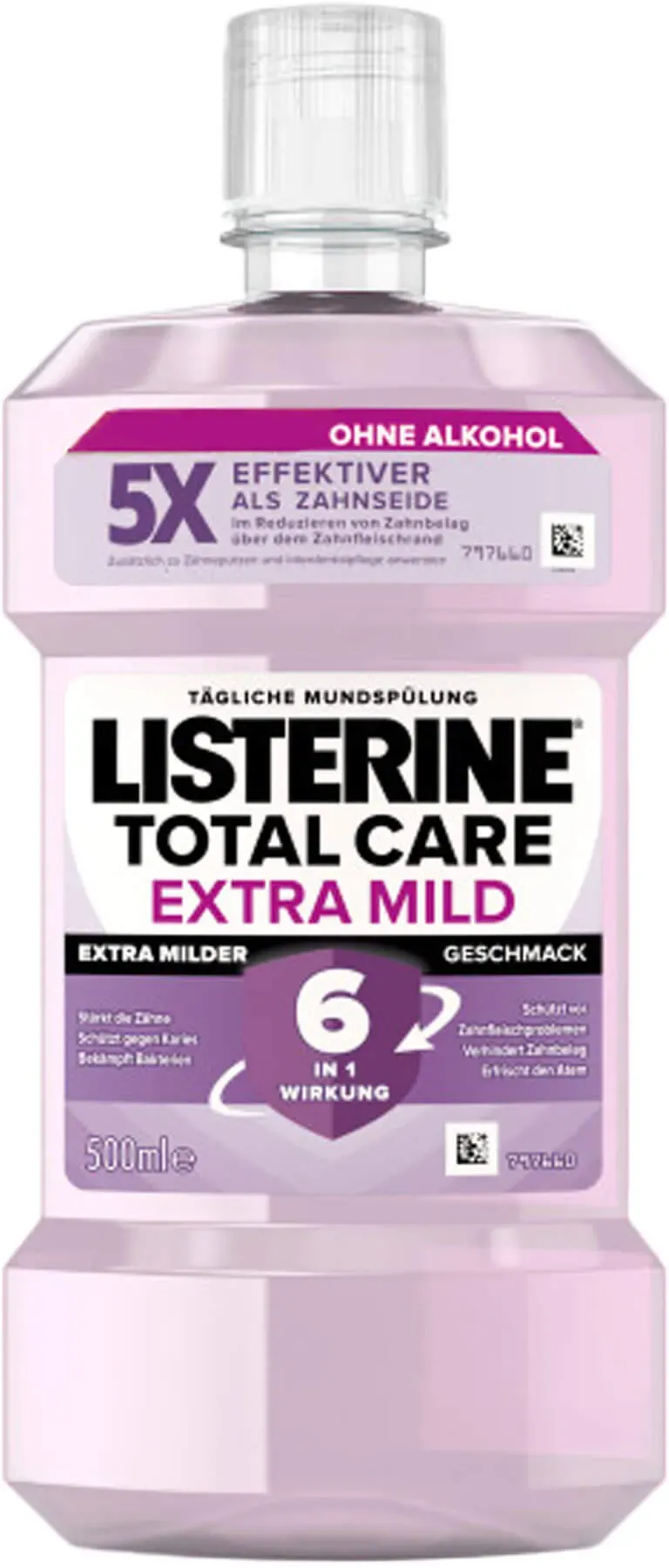 Auf Lager Versand durch AmazonLISTERINE Total Care Extra Mild 500 ml, schützende Mundspülung ohne Alkohol gegen Karies mit 6 in 1 Wirkung, antibakterielles Mundwasser schützt vor Zahnfleischproblemen, bis zu 24h frischer Atem