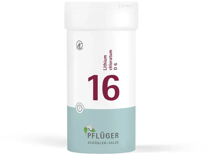 Verfügbarkeit: 1-2 Werktage - 0,04 €/St - Kategorie: Arzneimittel - DHU-Arzneimittel - GTIN:4150025811887 - PZN:02581188 - DHU Schüßler-Salz Nr. 16 Lithium chloratum D6 200 St - rezeptfrei - von DHU-Arzneimittel GmbH & Co. KG - Tabletten - 200 St - 7,27 Euro bei DocMorris Apotheke - gefunden von billiger.de Dieses Angebot ist das günstigste für Tropfen und somit ideal für preisbewusste Käufer, die diese Darreichungsform bevorzugen. ![]() ![]() Homöopathisches Laboratorium Alexander Pflüger GmbH & Co. KG Biochemie Pflüger 16 Lithium chloratum D6 Tropfen