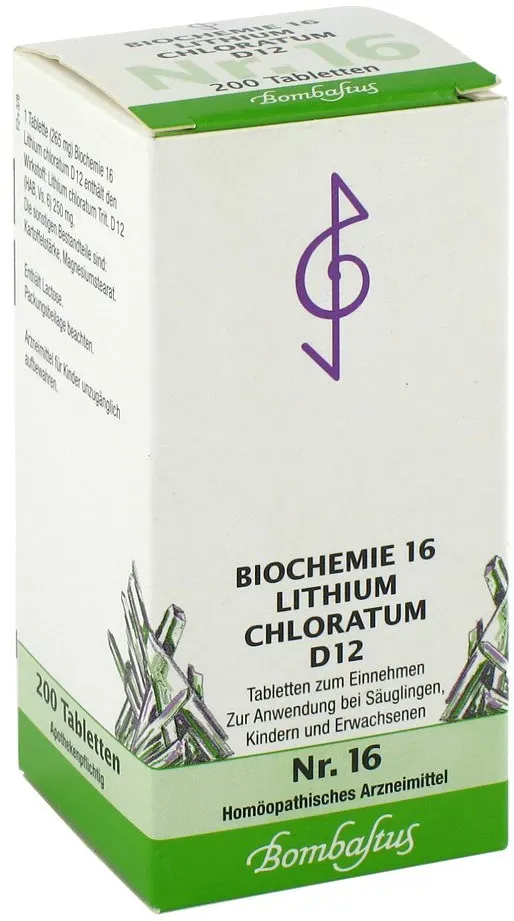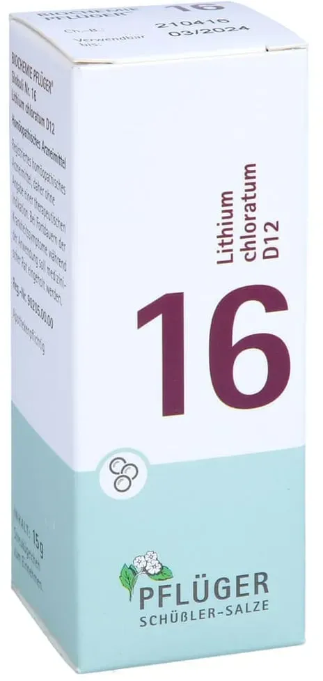 Verfügbarkeit: ca. 1-2 Werktage - 0.03 € / 1 ct - Kategorie: Arzneimittel - Bombastus - GTIN:4024671011949 - PZN:04324840 - 04324840: Bombastus-Werke AG - BIOCHEMIE 16 Lithium chloratum D 12 Tabletten 200 St - 6,13 Euro bei ayvita.de - gefunden von billiger.de Dieses Angebot für Globuli der D12 Potenz zu 7.99 Euro ist eine gute Wahl für Anwender, die diese Darreichungsform bevorzugen. ![]() ![]() Homöopathisches Laboratorium Alexander Pflüger GmbH & Co. KG Biochemie Pflüger Globuli Nr. 16 Lithium chloratum D12
