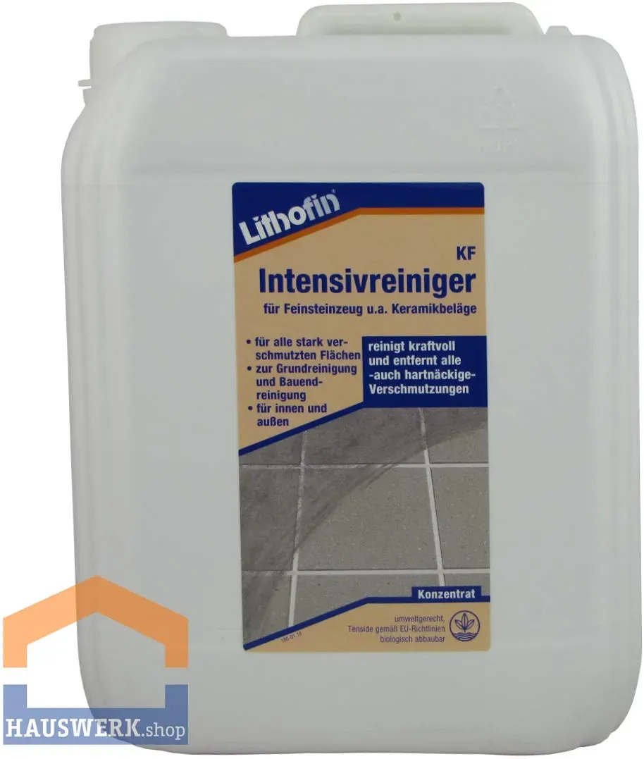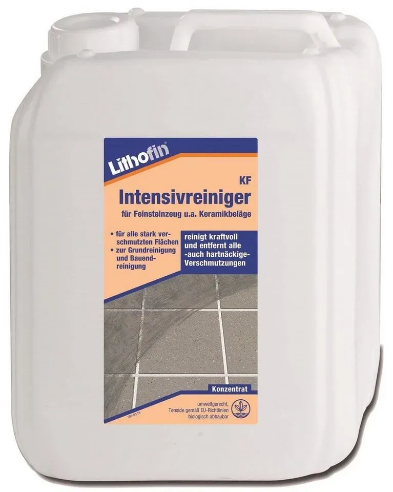 11.02 /1l - Kategorie: Reinigungsmittel - Lithofin - GTIN:4001524018058 - Produktdetails Inhaltsstoffe , 5% nichtionische Tenside, 5% anionische Tenside, 5% Phosphonat, Duftstoffe, - 55,10 Euro bei OTTO - gefunden von billiger.de Dieser Intensivreiniger in der 10-Liter-Größe ist das größte Gebinde und bietet den besten Literpreis für umfangreiche Reinigungsarbeiten. ![]() ![]() LITHOFIN KF Intensivreiniger 10 Liter Kanister/Feinsteinzeug Reiniger