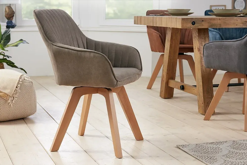 lieferbar-in 6-8 Werktagen bei dirriess-ambiente Polsterstuhl LIVORNO vintage taupe / natur (Einzelartikel, 1 St), Esszimmer Microfaser Armlehne 180 drehbar grau
