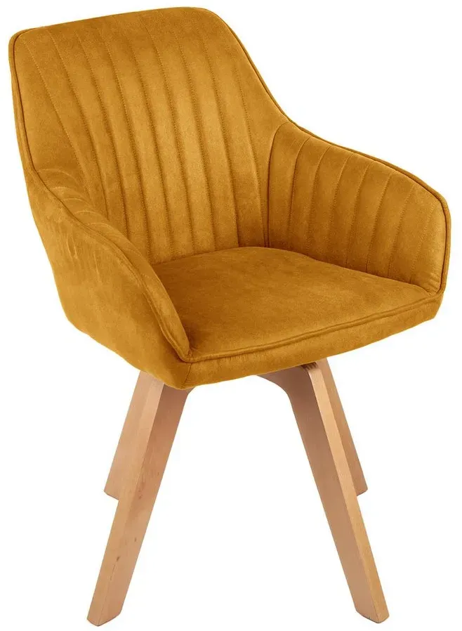 lieferbar-in 6-8 Werktagen bei dirriess-ambiente Polsterstuhl LIVORNO senfgelb / natur (Einzelartikel, 1 St), Esszimmer Samt Massivholz mit Armlehne 180 drehbar Retro gelb