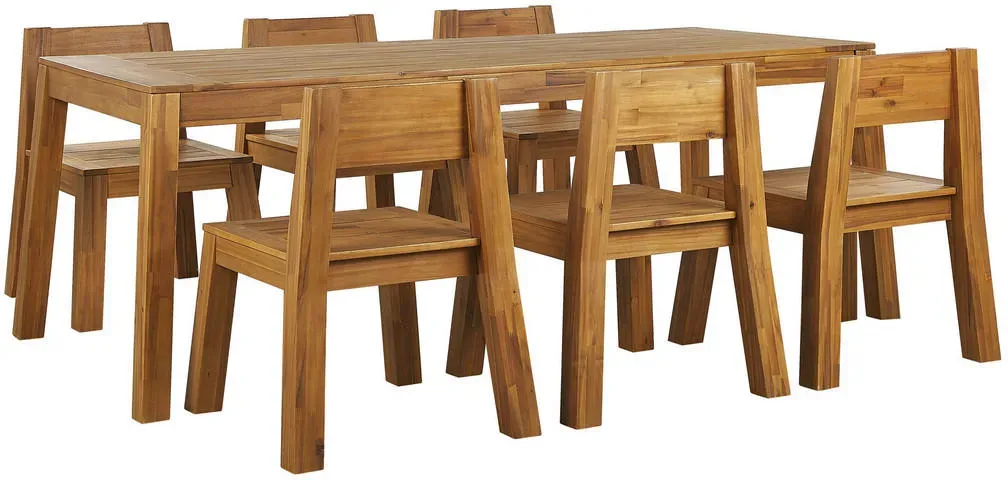 5 Händlerangebote bei billiger.de - Kategorie: Gartenmöbel-Sets - Beliani - Moderne Outdoor Essgruppe mit 6 Stühlen aus hochwertigem Akazienholz in Hellbraun. überzeugen Sie sich von der naturnahen Ausstrahlung dieser Terrassenmöbel und der Nachhaltigkeit der verwendeten Materialien. Die geräumige Tischplatte und breiten Sitzflächen bestehen aus länglichen hochwertiges laminiertes Akazienholzplatten und sind perfekt für größere Anlässe und Gartenpartys in Ihrem Außenbereich. Die natürliche Holzfarbe in Kombination mit einem klaren Design passt zu jedem Stil. Details: Typ: Gartentisch Set Stil: Klassisch Farbe: Braun Material: Akazienholz Tischplattenmaterial: Holz Finish: Geölt Anzahl Sitzplätze: 6 Personen Abmessungen: Stuhl: 59x61x81 cm Sitzhöhe: 45 cm Tisch: 225x105x77 cm Gesamtmasse: 210x90x77 Gewicht: 116 kg Max. Belastung pro Stuhl: 160 kg Max. Belastung des Tischs: 80 kg Sie kaufen: 1 x Tisch, 6 x Stühle Produktvorteile: Feste und komfortable Sitzfläche, Zeitloses Design, Die natürliche Holzmaserung und Knoten machen jedes Stück zu einem Unikat, Hochwertiges Material, Geeignet für den Innen- und Aussenbereich, Damit die Qualität des Artikels erhalten bleibt, sollte er vor Wasser und Regen geschützt werden, Fester Stand für optimale Stabilität Montage: Nicht montiert. 60-90 Min. Zusatzinformationen: Damit das folgende Produkt jahrelang seine Schönheit beibehält, stellen wir Ihnen ein ausführliches Pflegehandbuch zur Verfügung. Die Pflegeanleitung und Tipps zur ... Sie erhalten mehr Ergebnisse, aktuelle Angebote und weitere Preisbereiche wenn Sie den Preisvergleich aktualisieren: Mehr livorno stuhl Angebote Jetzt live Meta-Preisvergleich starten! Livorno stuhl Testberichte