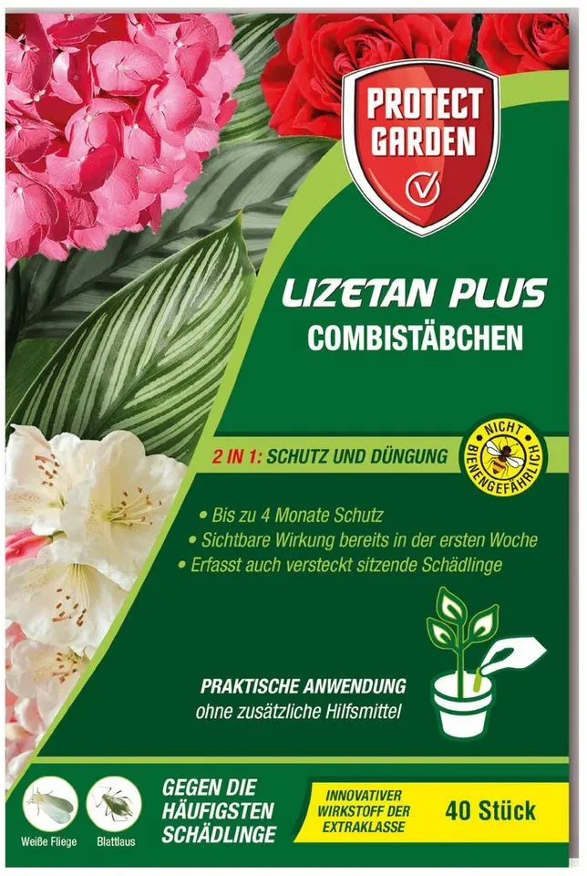 Lizetan plus combistäbchen 40 META PreisvergleichMit dem Meta-Preisvergleich suchen Sie gleichzeitig bei den großen Preisvergleich Portalen!Jetzt live Suche nach lizetan plus combistäbchen 40 starten! Lizetan plus combistäbchen 40 KaufberatungDie Lizetan Plus Combistäbchen 40 Stück sind ein 2-in-1 Produkt, das Zierpflanzen sowohl vor saugenden Schädlingen (z.B. Blattläuse, Weiße Fliege, Thripse, Zikaden) schützt als auch mit wichtigen Nährstoffen versorgt. Die Wirkung ist systemisch, erfasst auch versteckt sitzende Schädlinge und zeigt bereits in der ersten Woche sichtbare Erfolge. Der Schutz hält bis zu 4 Monate an[1][3][15]. Wichtig bei der Anwendung ist, die Stäbchen direkt in den Wurzelballen der Pflanze zu stecken und anschließend gut zu gießen. Die Dosierung richtet sich nach der Topfgröße: