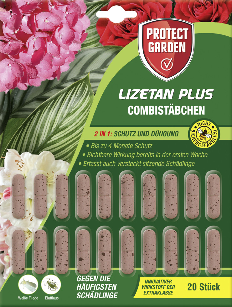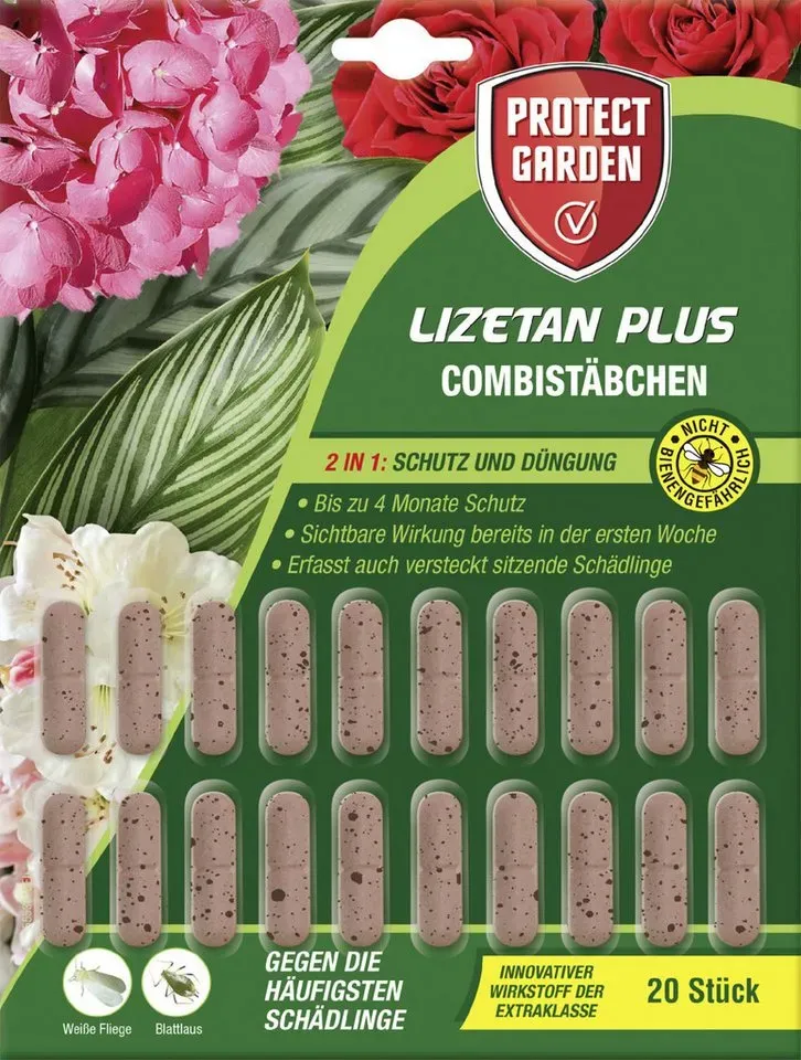 Lizetan plus combistäbchen META PreisvergleichMit dem Meta-Preisvergleich suchen Sie gleichzeitig bei den großen Preisvergleich Portalen!Jetzt live Suche nach lizetan plus combistäbchen starten! Lizetan plus combistäbchen KaufberatungDie Lizetan Plus Combistäbchen sind ein 2-in-1 Produkt, das Zierpflanzen sowohl vor saugenden Schädlingen wie Blattläusen und Weißer Fliege schützt als auch gleichzeitig mit wichtigen Nährstoffen (Dünger) versorgt[1][3][5]. Die Wirkung ist systemisch, erfasst also auch versteckt sitzende Schädlinge, und zeigt sich bereits in der ersten Woche nach Anwendung. Der Schutz hält bis zu 4 Monate an[1][3][9]. Wichtig zu beachten ist: