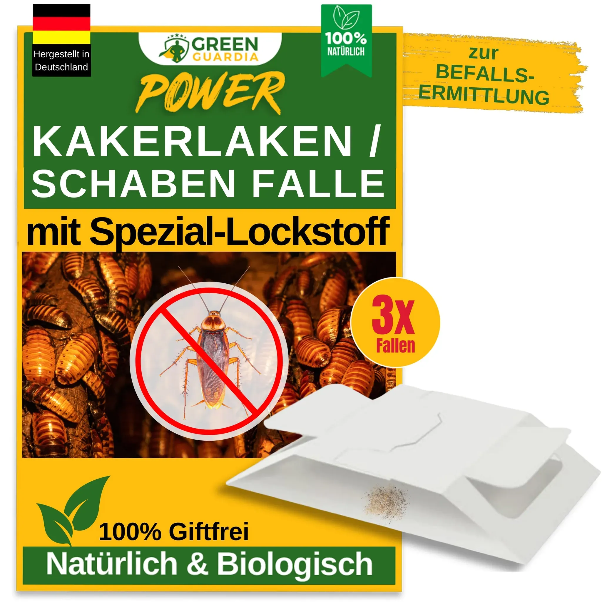Zustand: Neu - 0,92 € / stück - Universalabwehr Universalabwehr für drinnen - KRAFTKÖNIG - 01 - EAN: 4270004086881 - QUALITÄT AUS DEUTSCHLAND - Premium Qualität für höchste Ansprüche. Unsere Schabenfalle ist geruchlos, enthält ein starkes Lockmittel und überzeugt mit geprüfter Effektivität ganz ohne Kakerlaken Gift. INSEKTIZID- UND CHEMIEFREI - Unsere Kakerlakenfalle kommt ohne chemische Wirkstoffe aus. Eine wirksame Alternative zu Schabengel, Schabenspray, Cockroach killer und andere Mittel gegen Kakerlaken LANGANHALTENDE WIRKUNG - Bis zu 3 Monate bleibt die Kakerlaken Falle aktiv. Eine nachhaltige Wahl für alle, die eine langfristige Lösung suchen. Geeignet für jede Art von Kakerlake. UNWIDERSTEHLICHE ANZIEHUNGSKRAFT - Spezielle Lockstoffe helfen dabei, einen Befall von Kakerlaken frühzeitig zu erkennen, ideal für alle, die Schaben Bekämpfung und Küchenschabe bekämpfen möchten. EXTRA HYGIENISCHER GRIFF - Durch das einzigartige und durchdachte Design müssen Sie sich keine Sorgen machen, einer vollen Falle zu nahe zu kommen. Unkompliziert und einfach in der Handhabung. - Verkäufer: Mimelo im amazon.de Marketplace ![]() ![]() green guardia Kakerlaken/Schaben Falle mit Spezial-Lockstoff - 9X Kakerlaken/Schaben Fallen - umweltfreundlich Schaben bekämpfen, Chemiefreie Falle mit starker Klebefläche, giftfrei & geruchsneutral