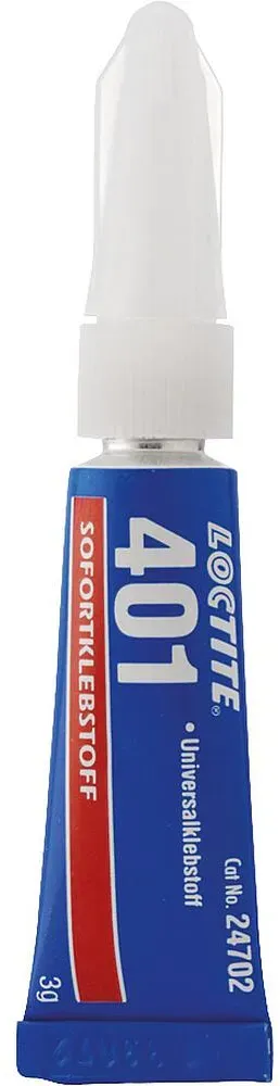 9 Händlerangebote bei billiger.de - Kategorie: Klebeprodukte - LOCTITE - Ideal für die Montage kleiner, passgenauer Teile mit gleichen oder ungleichen Materialpaarungen. Ausgezeichnet zum Fixieren von Klebungen. - GTIN:4100630295930 Ein sehr preiswertes Angebot für eine 3g Tube, perfekt für kleinere Reparaturen. ![]() ![]() LOCTITE 401 Universal-Sofortklebstoff farblos, niedrigviskos, 3gr Tube Blister