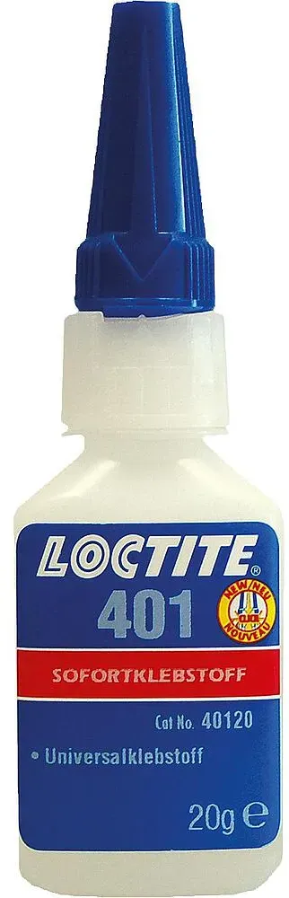 Kategorie: Klebeprodukte - LOCTITE - GTIN:5010266007885 - Universeller Sofortklebstoff (NSF) LOCTITE 401, 20g Dosierflasche - 28,50 Euro bei emax-haustechnik.de - gefunden von billiger.de Ein gutes Angebot für eine größere Menge, ideal für den professionellen oder häufigen Gebrauch. ![]() ![]() LOCTITE 401, universell einsetzbarer Flüssigkleber, hochfester Kleber für schnelle Reparaturen, schnell härtender Cyanacrylat Sekundenkleber für viele Materialien, 1x50g