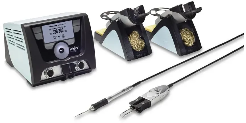 MONACOR - EAN: 4007754023886 - Lötstation, 48 W,: speziell für bleifreies Löten gemäß EU-Richtlinie (RoHS).Elektronische Temperaturregelung von 150-420 C, LED-Balkenanzeige für Temperatur, Kunststoffgehäuse, Ersatzlötkolben SIA-548ROHS, Passende Ersatzlötspitzen SIT-501ROHS, SIT-503ROHS, SIT-504ROHS, SIT-505ROHS, Stromversorgung 230 V/50 Hz/54 VA, Abmessungen 120 x 95 x 180 mm, Gewicht 1,9 kg, Technische Daten: Art: Lötstation, RoHS, Nennwert: elektronische Temperaturregelung von 150-420 C, Typ: 48 W, Farbe: Weiß, Material: Kunststoffgehäuse, Stromversorgung: 230 V/50 Hz/54 VA, Zul. Einsatztemperatur: 0-40 C, Abmessungen: 120 x 95 x 180 mm, Gewicht: 1,84 kg, Sonstiges: LED-Balkenanzeige, Verpackungseinheit: 1, Verpackungsmaße (B x H x L): 0,2 x 0,1 x 0,23 m, Bruttogewicht: 2,086 kg, Nettogewicht: 1,839 kg - bei ltt-versand.de - aus Yadore Produktdaten ![]() ![]() Weller 2-Kanal-Lötstation WX 2021 T0053422399N (WX WX2021 Lötstation T0053422699 Loetstation) Leistung: 200 (255) W/Temperaturbereich: 50-550 C/Abmessung L x B x H: 170 x 151 x 130 mm/Kanäle: 2