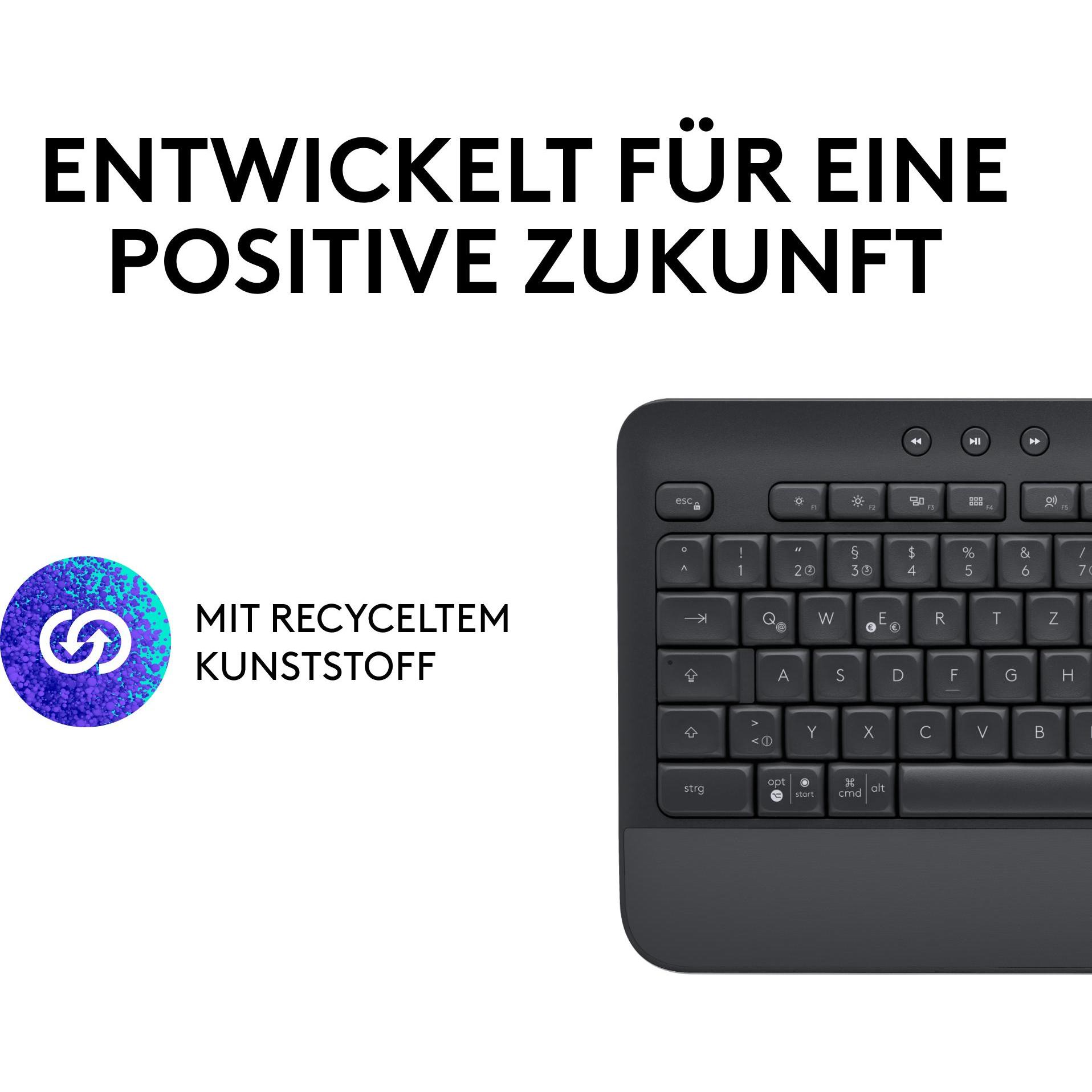 EAN: 5099206105508 - SIGNATURE K650 ist die ideale Lösung bei Ihrer täglichen Arbeit dank verbesserten Tastenkombinationen und integrierter Handballenauflage. Holen Sie sich den Komfort, den Sie für viele Stunden Arbeit am Schreibtisch brauchen. Mit spritzwassergeschütztem* und leicht zu reinigendem Design sowie einer Batterielaufzeit von bis zu 36 Monaten**, leicht zu transportieren ohne störende Kabel. KOMFORTABEL TIPPEN MEHR ERLEDIGEN Erleichtern Sie sich Ihren Arbeitsalltag und holen Sie sich den Komfort, den Sie für viele Stunden am Schreibtisch brauchen. Die Signature K650 bietet Funktionen, die Komfort und Produktivität gewährleisten. Mit verbesserten Tastenkombinationen, einer integrierten Handballenauflage und gedämpftem Tastendruck ist die Signature K650 für alle Ihre täglichen Anforderungen gerüstet und bietet Ihnen stundenlangen Komfort. ANGENEHMES TIPPGEFüHL DEN GANZEN TAG LANG Genießen Sie Komfort bei jedem Tastendruck für höhere Produktivität. Die Signature K650 verfügt über eine integrierte Soft-Touch-Handballenauflage und hohe, gepolsterte Tasten, die Ihnen ein angenehmes Tipperlebnis bei stundenlanger Arbeit am Schreibtisch ermöglichen. MEHR ERREICHEN MIT WENIGER MüHE Erledigen Sie mehr mit dem Layout in Standardgröße der Signature K650, auf der Sie mit Befehlen wie Screenshot-Aufnahme, Mikrofon-Stummschaltung sowie Web-Navigation auf alle richtigen Tastenkombinationen zugreifen und Zeit sparen können. FUNKTIONIERT AUF MEHREREN PLATTFORMEN Unabhängig vom ... ![]() ![]() Logitech Signature - Tastatur - kabellos - Bluetooth 5,1 - QWERTY - Deutsch - Graphite (920-010913)