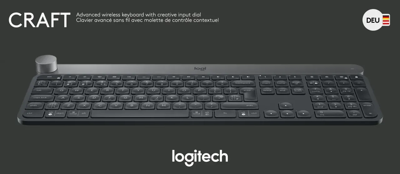 Logitech - EAN: 5099206072848 - VOLLSTäNDIGE KREATIVE KONTROLLE Craft ist eine kabellose Tastatur, die ein hochwertiges Tipperlebnis bietet und über einen vielseitigen Drehknopf verfügt, der sich an alles anpasst, was Sie tun, ohne Sie von Ihrem kreativen Fluss abzulenken. DIE RICHTIGE STEUERUNG ZUR RICHTIGEN ZEIT Die drehbare Kreativsteuerungstaste passt sich an die von Ihnen verwendeten Anwendungen an und bietet Ihnen je nach Aufgabe sofortigen Zugriff auf bestimmte Funktionen. Die berührungsempfindliche Steuerung ermöglicht es Ihnen, Ihre Kreativität voll auszuleben oder effizienter und konzentrierter zu arbeiten. BERüHREN UND STEUERN SIE IHRE LIEBLINGS-APPS In Windows oder macOS können Sie durch einfaches Drehen des Drehknopfes die Helligkeit in Adobe Photoshop CC einstellen, die Spurstärke in Adobe Illustrator CC ändern und vieles mehr. Windows-Nutzer können außerdem Text in Microsoft PowerPoint vergrößern, Diagramme in Microsoft Excel erstellen und vieles mehr. INTELLIGENTE BELEUCHTUNG Craft erwacht zum Leben, indem es beim Einschalten allmählich aufleuchtet, und die Tasten leuchten auf, sobald Sie Ihre Hand in ihre Nähe bringen. Die hintergrundbeleuchteten Tasten passen ihre Helligkeit automatisch an die wechselnden Lichtverhältnisse an. PRäZISE UND ERMüDUNGSFREI TIPPEN Tippen Sie mühelos auf einer Tastatur, die auf maximale Effizienz, Stabilität und Präzision ausgelegt ist. Die konkave Form der Tasten wurde für maximale Präzision entwickelt, und die ... Dieses Angebot bietet die Logitech Craft Advanced Tastatur zu einem attraktiven Preis, auch wenn es sich um ein italienisches QWERTY-Layout handelt. ![]() kaufland.d e Logitech Craft Advanced keyboard with creative input dial Tastatur RF Wireless + Bluetooth QWERTY Italienisch Schwarz, Grau 920-008500