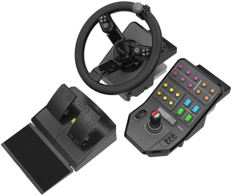 Auf Lager Versand durch AmazonLogitech G Saitek Farm Sim Controller, Farming Simulator Bundle bestehend aus Lenkrad, Steuerkonsole, Gas- und Bremspedal, 900° Lenkbereich, 38+ Tasten, USB-Anschluss, PC/Mac - Schwarz