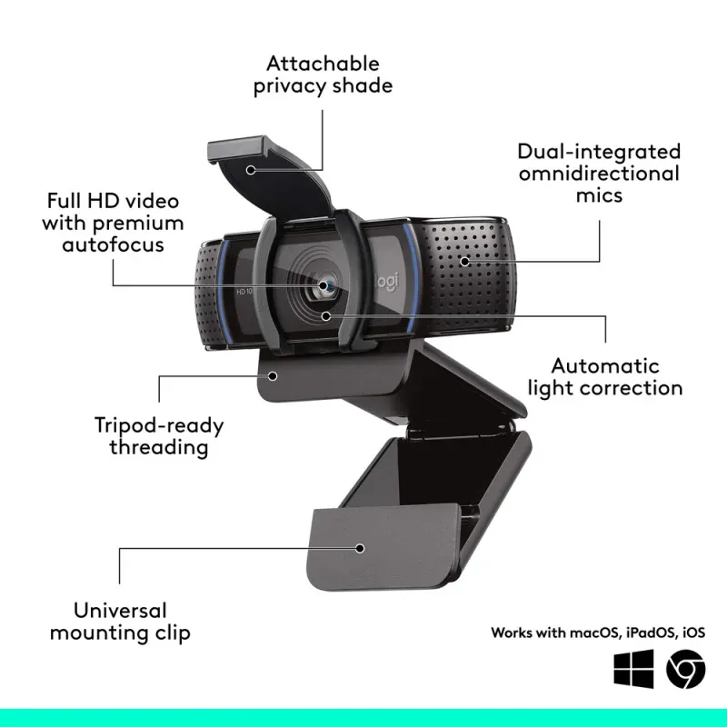 Kategorie: Webcams - Logitech - GTIN:5099206082199 - Das Logitech C920s HD Pro Webcam bietet Full-HD 1080p Video bei 30 fps, Autofokus und automatische Belichtungskorrektur für klare, natürlich aussehende Anrufe. Mit integrierten Stereomikrofonen, einem Datenschutzcover und Kompatibilität mit PC, Mac, ChromeOS, Android und Xbox One ist es eine vielseitige Wahl für Videokommunikation. - 56,68 Euro bei Joybuy - gefunden von billiger.de Dieses Angebot von Galaxus.de bietet die C920 zu einem guten Mittelklassepreis. ![]() ![]()