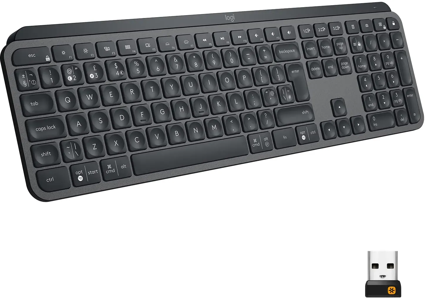Verfügbarkeit: Sofort lieferbar, Lieferzeit max. 1-3 Werktage - Kategorie: Tastaturen - Logitech - GTIN:5099206112094 - €¢ Anwendungsbereich: professionelles Arbeiten, Nummernblock integriert €¢ Nutzung mit & ohne Kabel €¢ Layout: deutsch €¢ anthrazit, 810g, 20,5 mm x 430 mm x 131 mm (H x B x T) €¢ Windows 11, Windows 10 Versandkostenfrei bis zum 23.12.25 - perfekt für Last-Minute-Geschenke! - 89,99 Euro bei Cyberport - gefunden von billiger.de Dieses Bundle enthält die MX Keys S Plus in Graphit und eine Handballenauflage, was den Komfort erhöht. ![]() ![]() Logitech MX Keys S Plus Graphite + MX Palm Rest (Handballenauflage), USB-C/A, Bluetooth, Logi Bold Adapter, Windows- und Mac Layout, Management via Logitech Options+