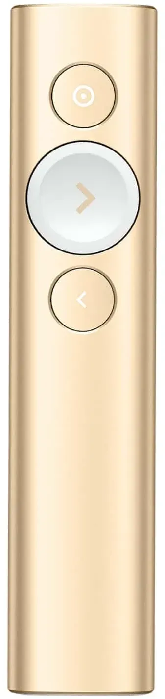 Kategorie: Sonstige Eingabegeräte - Logitech - GTIN:5099206070011 - Fortschrittliche Präsentationsfernbedienung: Mit Logitech Spotlight Presenter lassen sich Inhalte auf dem Bildschirm komfortabel hervorheben und vergrößern. Intelligentes Zeitmanagement: In der Spotlight-App legst du per Timing-Funktion Vibrationsalarme fest, die direkt und dezent in deiner Hand auslösen. Universell kompatibel: Logitech Spotlight Presenter ist optimiert für Windows, Mac OS und Tools wie PowerPoint, Keynote, PDF, Google Präsentationen und Prezi. Dual-Verbindung: Verbinde die Präsentationsfernbedienung flexibel über den USB-Empfänger oder per Bluetooth Low Energy Technology. PRäSENTIEREN WIE NIE ZUVOR: Mit Logitech Spotlight Presenter. Navigiere aus bis zu 30 Metern Entfernung durch Folien und interagiere mit den Inhalten auf dem Bildschirm.* Der anpassbare Timer sendet Vibrationsalarme direkt an die Hand und das fortschrittliche Zeiger-System erlaubt es dir, wichtige Bereiche hochauflösend hervorzuheben oder zu vergrößern.** Hinzu kommt das gestengesteuerte Scrollen, Schwenken sowie die Lautstärkeregelung. Du kannst sicher sein, dass du bei jeder Präsentation begeisterst. Eine Vollladung hält bis zu drei Monate und Logitech Spotlight Presenter lässt sich mit den meisten Geräten und Plattformen mit Präsentationssoftware bequem per Plug and play nutzen. *Ist von Nutzungs- und Umgebungsbedingungen abhängig. **Verfügbar über die Logitech Presentation App. Kern-Features: Hervorheben und ... Dieses Angebot bietet den Spotlight Presenter mit umfassenden Konnektivitätsoptionen zu einem guten Preis. ![]() ![]() Logitech Spotlight Presenter, Bluetooth und 2.4 GHz Verbindung via USB-Empfänger, Digitaler Laserpointer, 30m Reichweite, Timer, Vibrationsalarm, PC/Mac/Android/iOS - Gold