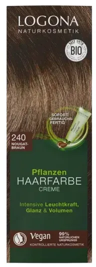 Auf Lager Versand durch AmazonLOGONA Naturkosmetik Pflanzen-Haarfarbe Creme 240 Nougatbraun, Braune Natur-Haarfarbe mit Henna, Braunton Farbcreme, Coloration für dunkles Haar, 150ml