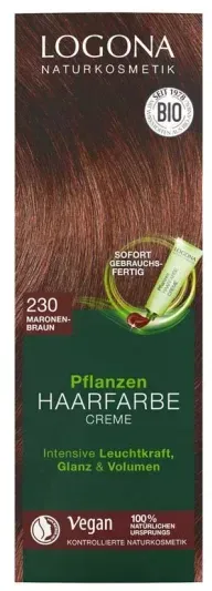 Auf Lager Versand durch AmazonLOGONA Naturkosmetik Pflanzen-Haarfarbe Creme - Maronenbraun - 150 ml - intensive Leuchtkraft, Glanz & Volumen - ohne Ammoniak - vegan & natürlich