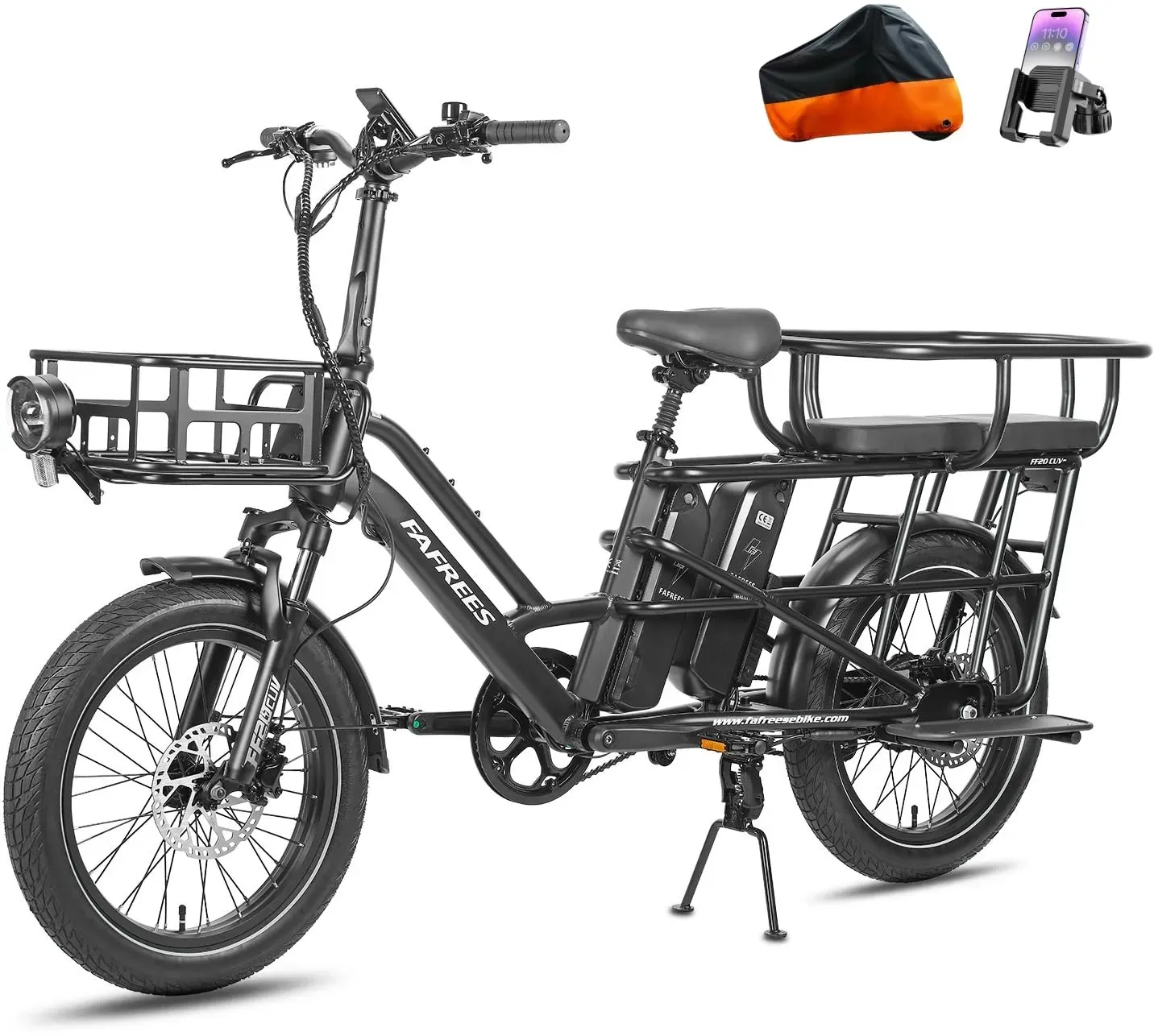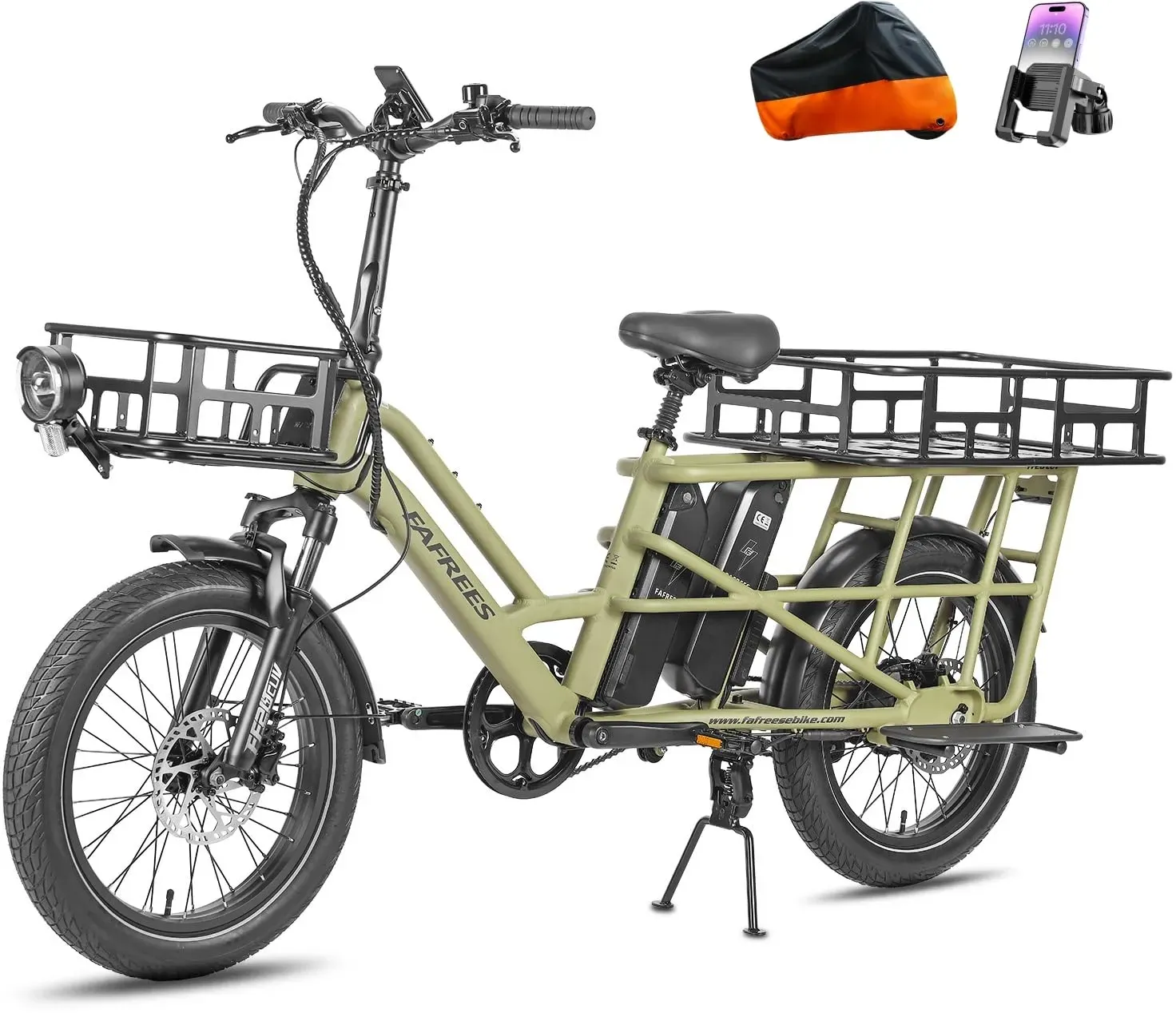 Kategorie: E-Bikes - Fafrees - Modulares Design für Familien Das FF20 CUV Ebike ist speziell für Familien konzipiert. Es transportiert sicher bis zu zwei Kinder und Ihre täglichen Notwendigkeiten und lässt sich schnell in ein Lastenfahrrad umbauen. Optionales Zubehör wie ein Frontkorb und ein Kindersitz ermöglichen es Ihnen, das Fahrrad an Ihre individuellen Bedürfnisse anzupassen Robuster Alltagsnutzen Dieses elektrofahrrad ist für schwere Lasten ausgelegt und dennoch alltagstauglich. Mit einer maximalen Gesamttragfähigkeit von 200 kg (150 kg für den Fahrer, 20 kg für den vorderen Korb und 100 kg für den hinteren Gepäckträger) eignet es sich perfekt für den Transport von Lebensmitteln bis hin zu Sportgeräten Doppelte Akkus, doppelte Reichweite Das Lasten-E-Bike verfügt über zwei 48V 12Ah Akkus. Ein integrierter Balancer sorgt für eine gleichmäßige Entladung und damit für stabile und effiziente Leistung. Das System bietet eine Reichweite von 100 bis 140 Kilometern mit einer einzigen Ladung. Jeder Akku wird in ca. 4,5 Stunden aufgeladen. Das abnehmbare Design ermöglicht einfaches und bequemes Laden egal wo Sie unterwegs sind Intelligentere Tretunterstützung Dieses City E-Bike verfügt über einen 250W Hinterradnabenmotor und einen Drehmomentsensor für eine sanfte und intuitive Tretunterstützung. Das System reagiert sofort auf Ihre Tritte und liefert bis zu 75 Nm Drehmoment für sicheres Anfahren und Bergauffahren. Die 250-W-Leistung entspricht den EU-Normen und ist europaweit ... Dieses Fafrees Longtail E-Bike mit Kindersitz ist eine beliebte Wahl auf Amazon und bietet eine gute Ausstattung für den Preis. ![]() ![]() Fafrees Longtail E-Bike 20 * 3.0 Zoll, E-Lastenrad 250W 25km/h, ebike Damen 12Ah*2 Akku, E-Fahrrad 75N.m Reichweite 100-140km, Tragkraft 200kg (Vorderkorb + Kindersitz, Grün)