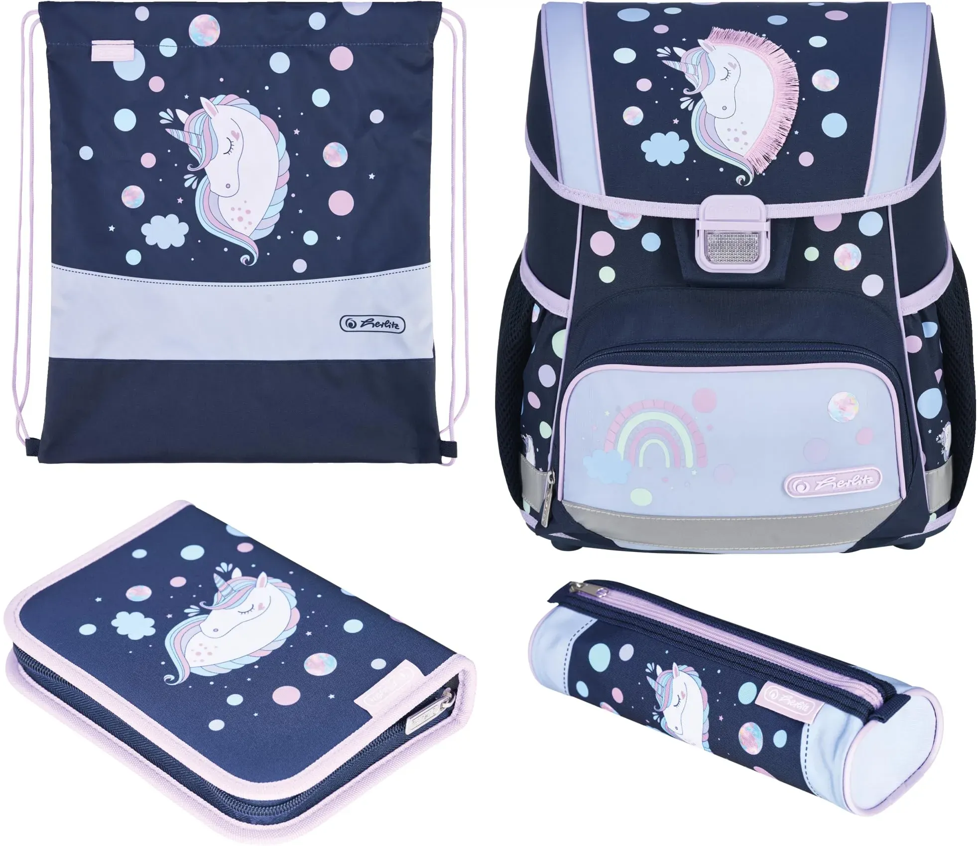 HERLITZ - EAN: 4008110396880 - (656781818) Allgemein Schultaschen-Set enthalten Pencil case, Pencil pouch, School bag, Sport bag - bei 0815.eu - aus Yadore Produktdaten Dieses Premium-Schulranzen-Set ist eine umfassende Lösung für den Schulstart mit vielen Extras. ![]() ![]() Herlitz Schulranzen - Set Loop eBay Plus Unicorn Dreams Premium 20-teilig gefüllt Shop