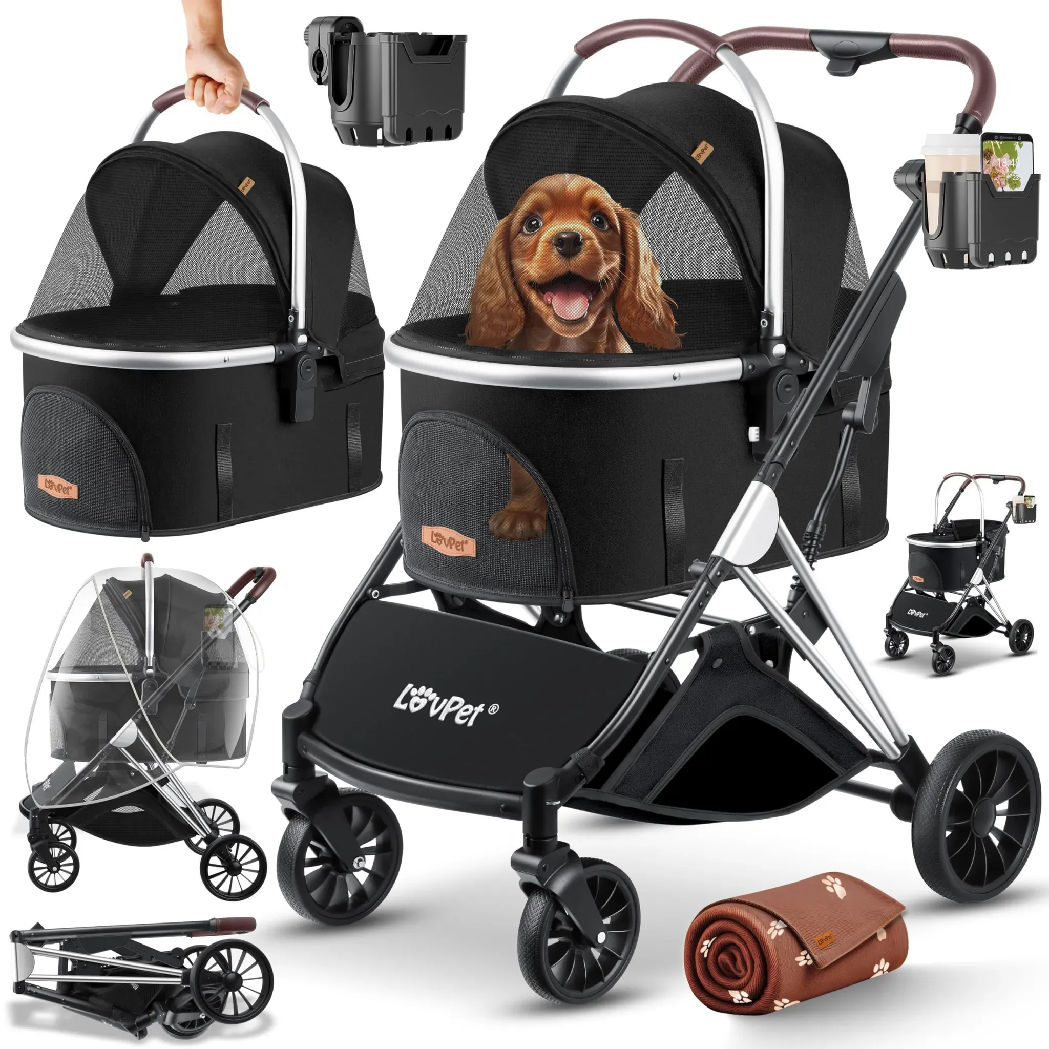keine Angabe Sofort lieferbar, 1-3 Werktage in_stockLOVPET Hundewagen 3in1 Hundebuggy Hundebox Transporttasche 360° Große Räder Faltbar klappbar Haustiere Buggy mit Netzfenstern & Regenschutzabdeckung Schwarz