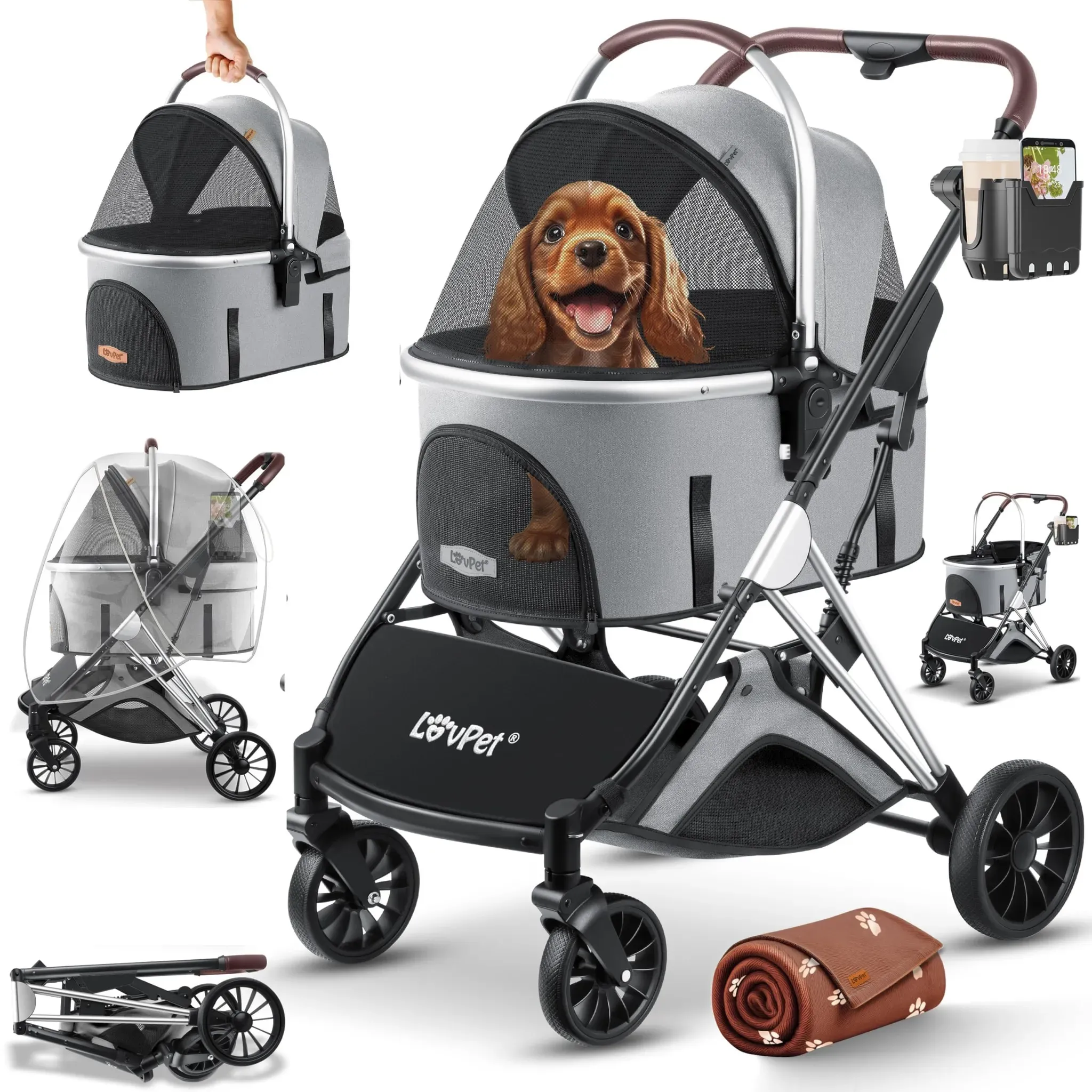 lieferbar-in 2-3 Werktagen bei dirLovpet Hundebuggy 3in1 Hundewagen max. bis 20kg Buggy für Haustiere, (Hundebox & Tasche mit Regenschutzabdeckung Getränkehalter Kuscheldecke), Haustier- & Katzenbuggy faltbar & klappbar, Große Räder & Netzfenster grau