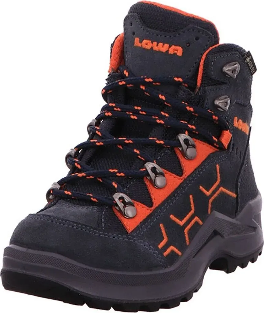 / - Wanderschuhe Sportarten Outdoor Schuhe Trekking- & Wanderschuhe Mid Kindersportschuhe - EAN:4063606694673 - Der Kody EVO GTX Mid JR von Lowa ist ein hochwertiger Kinderschuh, der speziell für aktive Outdoor-Abenteuer entwickelt wurde und durch seine robuste Bauweise und Funktionalität überzeugt: Details: Halbhohe Konstruktion: Bietet optimalen Halt und Stabilität für wachsende Füße und schützt die Knöchel, ohne dabei die Bewegungsfreiheit einzuschränken. GORE-TEX R -Membrane: Sorgt für wasserdichten, winddichten und gleichzeitig atmungsaktiven Schutz, sodass die Füße auch bei nassen und wechselhaften Wetterbedingungen trocken bleiben. Robustes Spaltleder: In Kombination mit der langlebigen Vibram R -Sohle rt der Schuh eine hohe Strapazierfähigkeit und sicheren Grip auf unterschiedlichen Untergründen. Kinderfreundliche Passform: Der Schuh ist speziell für mittelbreite Kinderfüße konzipiert und bietet durch die Standardleistenweite und die ergonomische Form hohen Tragekomfort. Schafthöhe: Mit einer Innenhöhe von 103 mm und einer Außenhöhe von 120 mm schützt er die Füße auch in anspruchsvollem Gelände zuverlässig. Leicht und flexibel: Ermöglicht eine natürliche Bewegungsfreiheit, was besonders wichtig für aktive Kinder ist, die viel unterwegs sind. Farbbezeichnung: Stahlblau/Orange Die Marke LOWA ist Mitglied der Fair Wear Foundation. - gefunden von Kelkoo Ein zuverlässiger Mid-Cut Schuh mit GTX-Membran, der guten Schutz und Komfort für aktive Kinder bietet. Schuhe.de