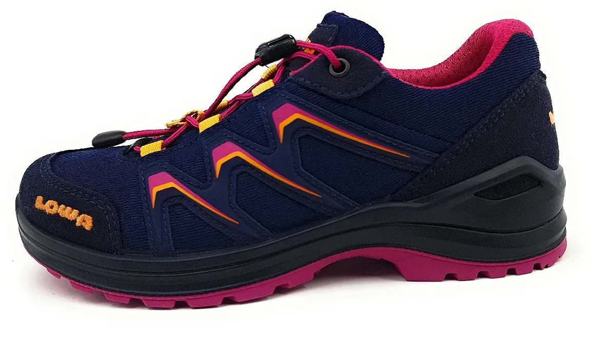 sport Kindersportschuhe - EAN:4056264856811 - Wenn kindliche Abenteuerlust und strapazierfähige Multifunktionsschuhe aufeinandertreffen, dann kann am Ende eigentlich nur ein perfekter Kinderschuh dabei herauskommen. Und weil die Kids ihren großen Vorbildern gerne nacheifern, gibts vom Modell für Erwachsene mit dem Innox PRO GTX MID Junior nun auch eine Variante für die kleinen Füße. Dabei hält das GORE-TEX-Futter die Füße zuverlässig trocken, während die direkt angespritzte Zwischensohle aus Lowa DynaPU ein natürliches Abrollverhalten sowie einen hohen Komfort ermöglicht. Für multifunktionale Outdooreinsätze der kleinen Abenteurer wurde die Performance-Sohle Lowa Multi Trac Kids konzipert. Die dreieckige Stollenform zeigt beste Eigenschaften bergauf und bergab auf unterschiedlichen Böden. Die abriebfeste flexible Laufsohle punktet durch ein angenehmes Abrollverhalten und Langlebigkeit ? auch bei vielen Einsätzen auf Asphalt. Farbe: navy/beere - gefunden von Kelkoo Ein Premium-Modell für Kinder, das höchste Ansprüche an Komfort, Schutz und Langlebigkeit erfüllt. Schuhe.de