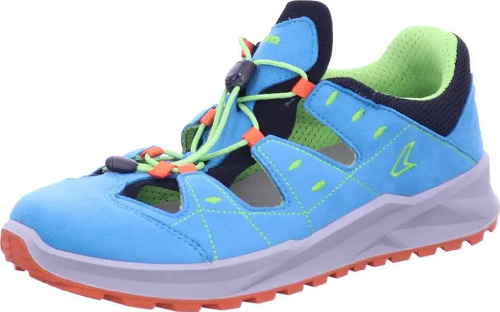 3 Händlerangebote bei billiger.de - Kategorie: Kinder-Sandalen - Lowa - Lowa Outdoorsandale ARIOSO Junior Türkis Limone Er überzeugt nicht nur durch sein cooles Design.Denn der Schuh ist richtig vielseitig und trägt sich im Alltag genauso gut wie in der Freizeit oder auf Reisen. Sein Obermaterial aus Synthetik und Textil ist dabei super pflegeleicht und daher langlebig. Ausgestattet ist der Vento mit der hauseigenen LOWA Urban Trail Junior Laufsohle.Diese bietet mit ihrem Profil eine tolle Griffigkeit auf den unterschiedlichsten Untergründen.Und auch der Tragekomfort kommt nicht zu kurz - dank der Dyna-PU Zwischensohle. Sie federt mit ihren dämpfenden Eigenschaften jeden Schritt schön weich ab - selbst nach kilometerweiten Strecken.Kurzum: Der Arioso Junior überzeugt einfach in jeglicher Hinsicht. -33 Der Lowa ARIOSO JUNIOR ist ein vielseitiger Kinderschuh, der speziell für aktive Kinderfüße entwickelt wurde. Mit seinem atmungsaktiven Obermaterial aus Textil und Synthetik bietet er optimalen Tragekomfort an warmen Tagen. Die integrierte DynaPU -Zwischensohle sorgt für eine effektive Dämpfung und unterstützt ein angenehmes Abrollverhalten, selbst bei intensiver Nutzung. Ein praktischer Schnellverschluss ermöglicht ein einfaches An- und Ausziehen, was besonders im Alltag von Vorteil ist. Mit einem Gewicht von ca. 370 g pro Paar (Größe 31) ist der Schuh zudem angenehm leicht. Der ARIOSO JUNIOR kombiniert Funktionalität mit kindgerechtem Design und ist somit ein zuverlässiger ... Dieses Modell bietet einen guten Einstiegspreis für LOWA Kinder Wanderschuhe im Low-Cut-Design. Gigasport. de LOWA Kinder Wanderschuhe Maddox Pro GTX Low JR dunkelblau 33 B
