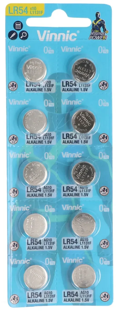 4 Händlerangebote bei billiger.de - Kategorie: Batterien & Akkus - Camelion - 10 Stück Marken Alkaline-Einweg-Batterie Type LR54 Die hochwertige IEC LR54 Knopfzelle mit 1,5 Volt und bis zu 65mAh Leistung. Mit den Maßen 11,6x3,05mm und einem Gewicht von 8Gramm Sehr geringe Selbstentladung 0,2% / Monat Sehr lange Lagerfähig ca. Lieferung 10 Stück Batterien LR54 Knopfzellen Kompatibel bzw. Ersatz für: LR54, 8GA, 189, 89, LR113 Technische Daten: System: Alkaline, Spannung: 1,5 Volt Kapazität: 65mAh, Maße (LxD): 11,6 x 3,05 mm Gewicht: ca. 8 Gramm, Farbe Silber - GTIN:4055909141374 ![]() ![]() Vinnic 10 Stück Knopfzelle AG10, LR54, L1131F, LR1130, 189, RW89