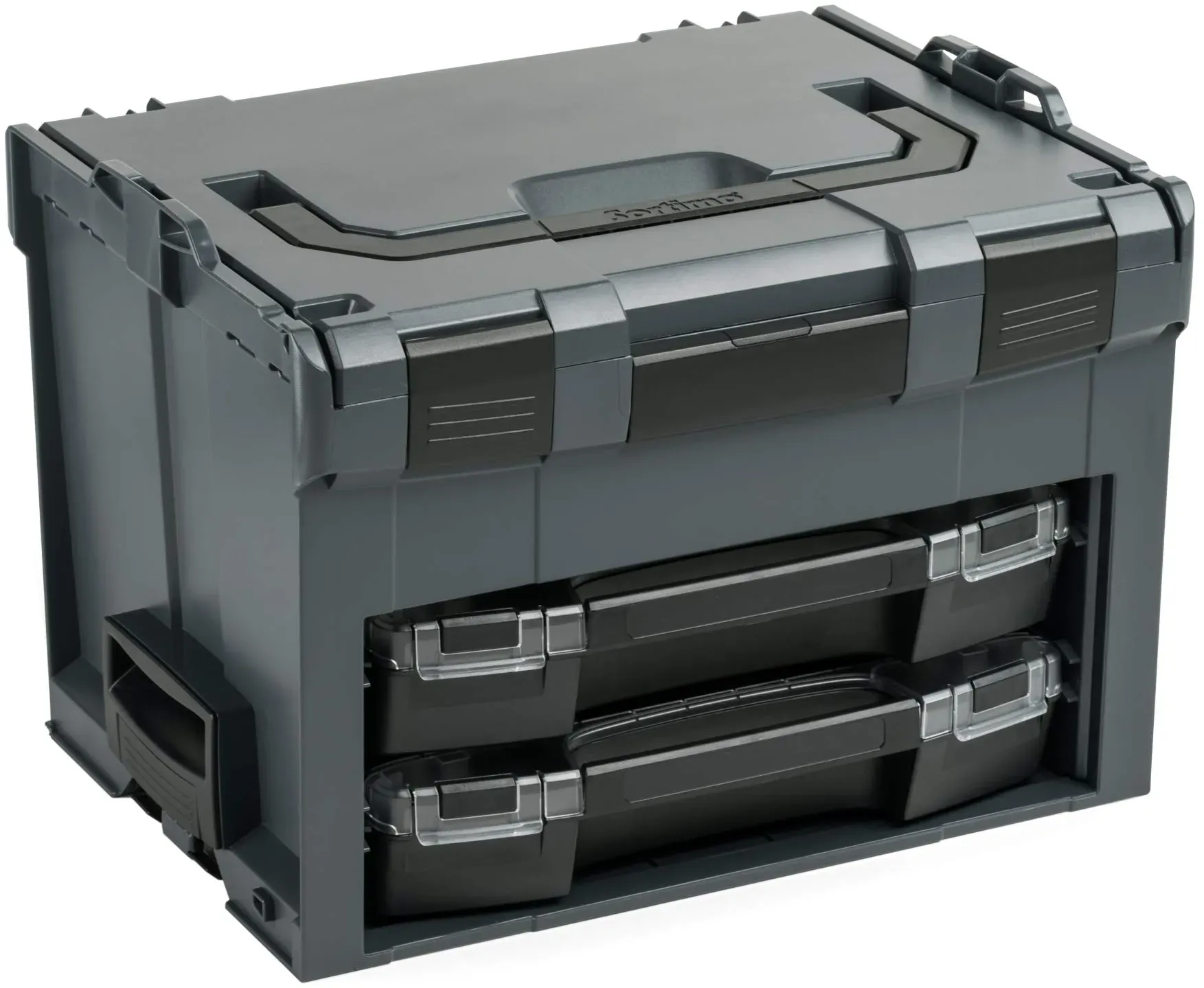 Verfügbarkeit: Auf Lager - Kategorie: Werkstatteinrichtung - L-BOXX - GTIN:4260339981883 - œ WERKZEUGKOFFER SYSTEM €“ Die Kompatibel mit dem Bosch Sortimo-System LS-BOXX verfügt über ein individuelles Klicksystem, welches den Transport mehrerer Werkzeugkästen gleichzeitig ermöglicht œ TüV-GEPRüFT €“ Alle Werkzeugkoffer der Kompatibel mit dem Bosch Sortimo-System L- Boxx Reihe können einfach und sicher in den TüV-Geprüften Sortimo Fahrzeugeinrichtungen transportiert werden œ VARIABLE L-BOXX EINLAGEN €“ Die LS-Boxx Werkzeugkoffer verfügen über einen modulierbaren Innenraum, welcher maximale Flexibilität in der Aufteilung ermöglicht œ FLEXIBEL UND KOMPATIBEL €“ Ein L-Boxx Set kann flexibel mit einem anderen L Boxx Werkzeug Set kombiniert und weiter ergänzt werden €“ arbeiten wie die Profis œ PREMIUM QUALITäT €“ Professionelle Werkzeug Koffer, ideal für die Aufbewahrung von Ihrem Werkzeug. Ein Werkzeugkoffer der Arbeitsabläufe optimiert und effizientes Arbeiten ermöglicht - 126,35 Euro bei Amazon Marketplace Home - gefunden von billiger.de Eine anthrazitfarbene LS-BOXX 306 mit zwei i-BOXXen (H3 + I3), die viel Stauraum und Sortiermöglichkeiten bietet. ![]() ![]() L-BOXX Sortimo LS-Boxx 306 anthrazit mit 2 x i-Boxx 72 H3 + I3