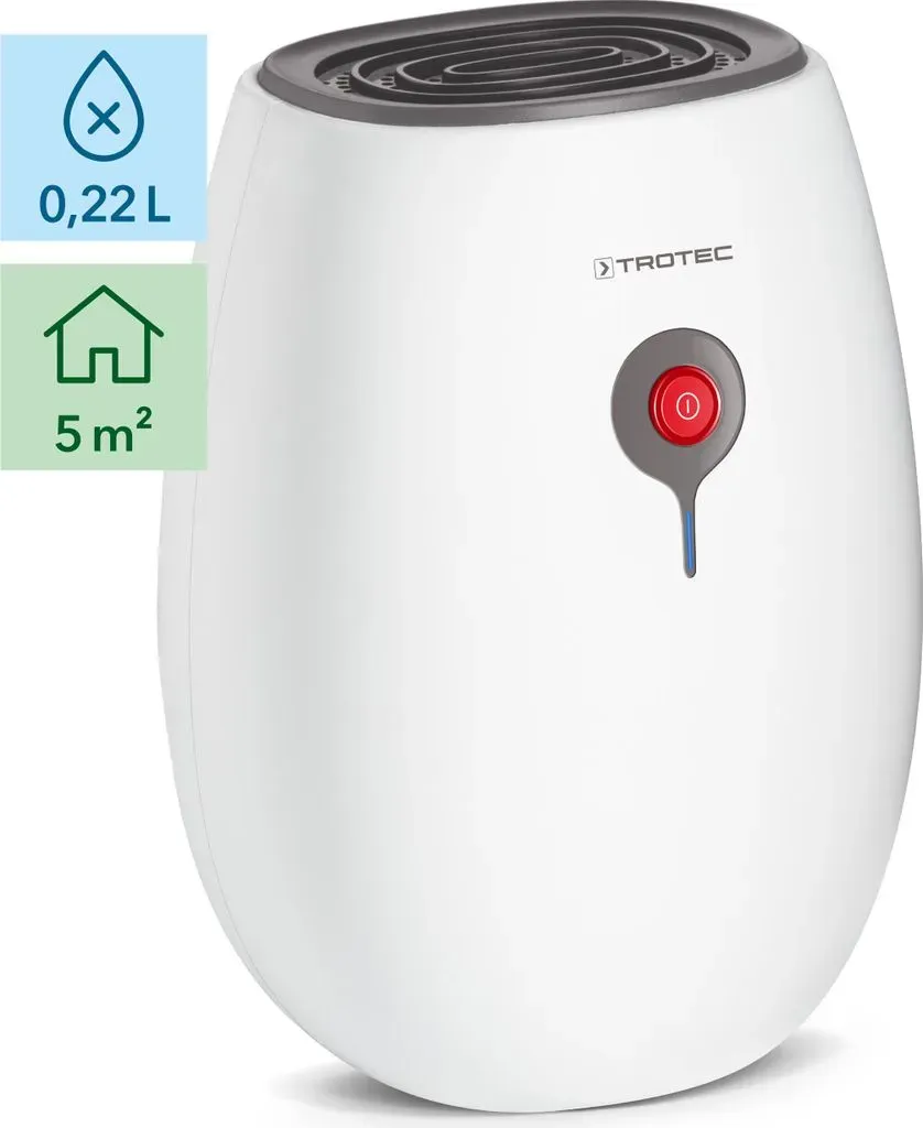 Verfügbarkeit: 5-6 Werktage - Kategorie: Luftentfeuchter - Trotec - GTIN:4052138016954 - Peltier-Luftentfeuchter TTP 2 E Optimale Trockenlösung - in zeitlosem Design Mit dem ultrakompakten Peltier-Luftenfeuchter TTP 2 E lässt sich auf kleinstem Raum ein überzeugendes Ergebnis erzielen. Denn er nimmt nur etwa 2/3 des Platzes eines Schukartons ein - ist aber im Gegensatz zu diesem mit einer innovativen thermoelektrischen Technik ausgerüstet, die allzeit trockene Verhältnisse verspricht und Sie von muffiger, feuchter Raumluft befreit. Mit einer Entfeuchtungsleistung von rund 220 ml lassen sich Räume bis 5 m2 zuverlässig trocknen. Dank des schlicht-eleganten Designs und der besonderen Kompaktheit fügt sich der TTP 2 E in jedes Wohn- und Arbeitsumfeld ein. Doch gerade an sensiblen Feuchtestellen ist der Peltier-Luftentfeuchter besonders gut aufgehoben. Kleider- und Schuhschränke, Lebensmittel-Vorratskammer oder bedingt auch kleine fensterlose Sanitärräume befreit der TTP 2 E von überschüssiger Feuchtigkeit oder verringert den Schwitzwasserniederschlag und verhindert so die Schimmelbildung. Weil sein Betrieb nicht nur energieeffizient optimiert ist, sondern zudem auch noch dank des Peltier-Elementes flüsterleise erfolgt, stört das Gerät keinesfalls die Nachtruhe. Darüber hinaus punktet das TTP-Gerät im Entfeuchtungsbetrieb mit seiner einfachen Handhabung: Stecker ins Stromnetz einstecken, anschalten und fertig. Eine LED zeigt gut erkennbar, ob das Gerät im ... Ein kompakter und ultraleiser Luftentfeuchter mit LED-Licht, perfekt für kleine Räume bis 20 m³ und geringem Stromverbrauch. ![]() ![]() loefme Luftentfeuchter 1000ml Mini-Luftentfeuchter, für 20 m3 Räume, Entfeuchtung 0,30 l/Tag, Tank 1,00 l, tragbarer und ultraleiser Luftentfeuchter elektrisch, LED-Licht weiß
