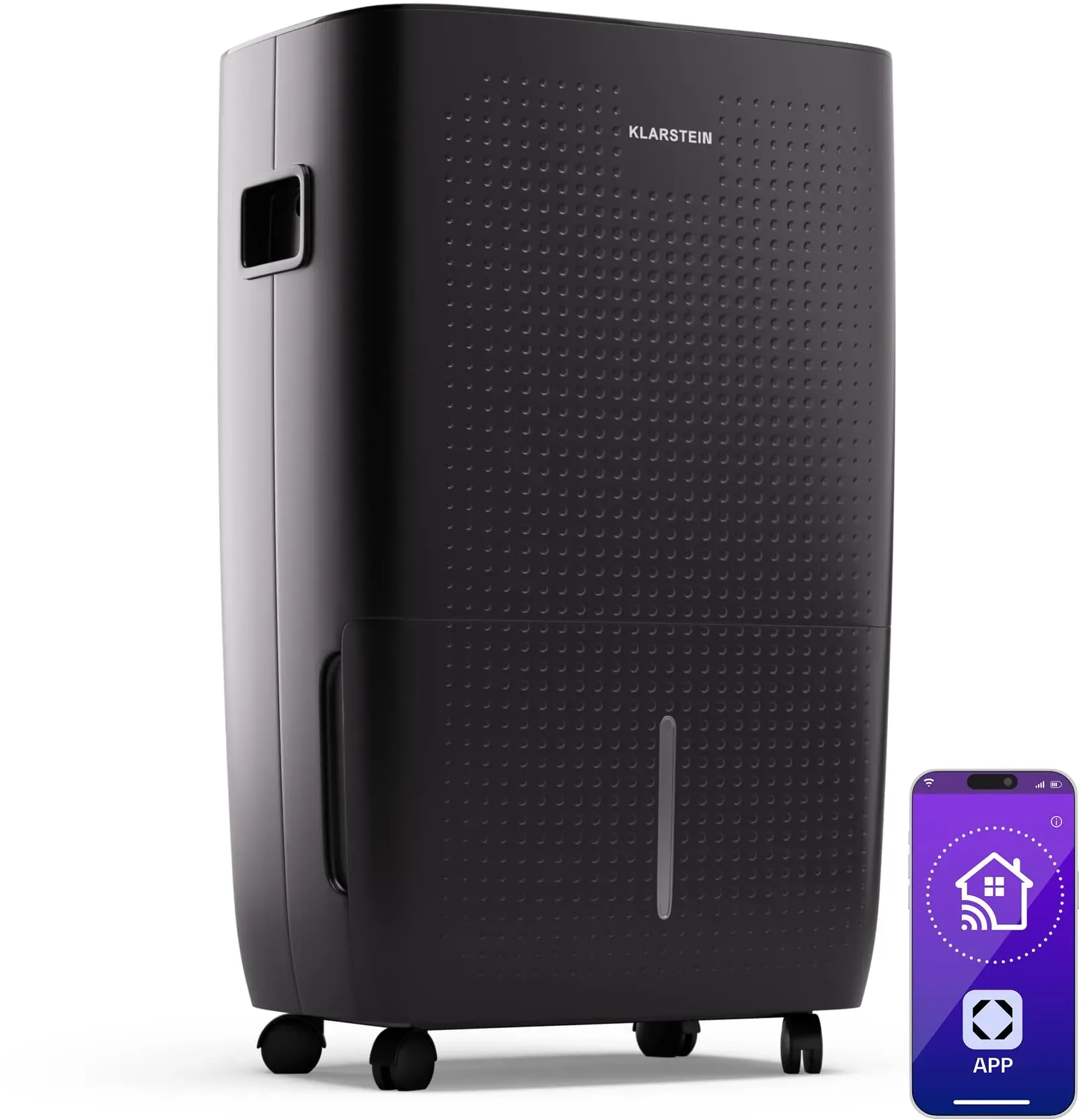 Verfügbarkeit: Auf Lager - Kategorie: Luftreiniger - Greenmigo - GTIN:0757347223349 - EFFIZIENTE ENTFEUCHTUNG:Der Greenmigo ALPHA-Q25 Pro WiFi Design bekämpft effektiv Feuchtigkeit in Wohnung und Haus und sorgt für ein gesundes Raumklima.Mit einer Leistung von max.395W und 2 Ventilationsstufen mit Luftstromvolumen von max.190m3/h eignet er sich für Zimmer mit bis zu 70qm Größe.In Bad,Küche sowie Schlafzimmer lässt er Schimmel und Nässe keine Chance.Textilien,Wände und Möbel bleiben verschont.Stromversorgung:220-240V~50Hz. MULTIFUNKTIONAL:Luftentfeuchter, Luftreiniger und Wäschetrockner in einem der angenehm leise ALPHA-Q25 Pro WiFi Design bietet die ideale Basis für ein Klima zum Wohlfühlen.Als Feuchtigkeitskiller hilft er gegen eine zu hohe Luftfeuchtigkeit im Büro oder zu Hause und wirkt effektiv gegen Schadstoffe.Auch als Trocknungsgerät für Wäsche erfüllt er seinen Zweck.Eingebauter Ionisator und hochwirksamer antibakterieller Vorfilter kann helfen die Luft zu reinigen. APP FUNKTION:Laden Sie mit Ihrem Smartphone die Tuya App herunter und folgen Sie den Schritt-für-Schritt-Anweisungen,um Ihren Luftentfeuchter mit dem WLAN zu verbinden und die Steuerung einzurichten. Sie können einstellen via LED-Display Soll-Raumluftfeuchtigkeit (30-80%),Timer (0-24 Std.),Schlafmodus und Ventilation (Luftstromvolumen von max.190m3/h) auch lokal am Gerät einstellen. Halten Sie den Raum immer gemütlich oder passen Sie einfach Ihre Entfeuchtungsbedürfnisse an. ... Der Klarstein DryFy Connect 40 bietet eine hohe Entfeuchtungsleistung von 40L/Tag und ist ideal für größere Räume bis 45m, steuerbar per App. ![]() ![]() Klarstein Luftreiniger DryFy Connect 40 Luftentfeuchter WiFi Kompression 40l/d 35-45m2, Raumentfeuchter Luftentfeuchter elektrisch Entfeuchter Lufttrockner weiß 37 cm x 61.5 cm x 26 cm