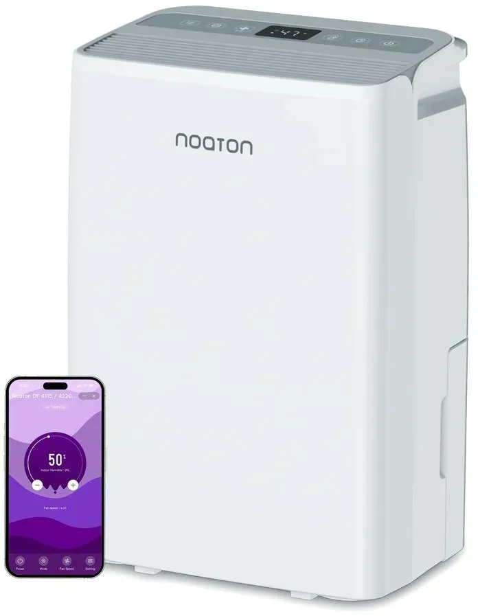 Verfügbarkeit: 2-3 Werktage - Kategorie: Luftreiniger - Noaton - GTIN:8595679405062 - NOATON DF 4220 HEPA WIFI LEISTUNGSSTARKER UND INTELLIGENTER LUFTENTFEUCHTER FüR GRöSSERE RäUMEBefreien Sie sich ein für alle Mal von überschüssiger Feuchtigkeit, Schimmel und verbrauchter Luft. Der Noaton DF 4220 HEPA WiFi ist ein zuverlässiger Kompressor-Luftentfeuchter mit hoher Leistung und modernen Funktionen, der selbst größere Räume mit einer Fläche von bis zu 70 m2 bewältigt.Dieses Modell ist die ideale Wahl für Haushalte, die mit Feuchtigkeit oder Schimmelbildung zu kämpfen haben. Dank seines leisen Betriebs (max. 40 dB) eignet er sich auch für Schlaf- und Kinderzimmer und sorgt dort für ein gesundes und angenehmes Raumklima ohne verbrauchte Luft. In Kellern, Badezimmern oder Waschküchen hilft er, das Trocknen der Wäsche zu beschleunigen und die Kondensation von Feuchtigkeit an den Wänden zu verhindern.Dank des HEPA H13-Filters reinigt er gleichzeitig die Luft von Staub, Pollen und Allergenen eine hervorragende Wahl für Allergiker und anspruchsvolle Nutzer.INTELLIGENTE STEUERUNG üBER WLAN UND DIE TUYA SMART APPMit der WLAN-Funktion haben Sie Ihren Luftentfeuchter jederzeit und überall im Griff.In der Tuya Smart App (für Android und iOS) können Sie:das Gerät per Fernzugriff ein- und ausschalten,den Modus oder die Luftfeuchtigkeit einstellen, den Timer (024 h) programmieren,zwischen den Modi wechseln unddie aktuelle Luftfeuchtigkeit in Echtzeit ... Dieser Klarstein Luftentfeuchter bietet eine hohe Entfeuchtungsleistung von 60L/24h und ist somit auch für größere Räume oder bei starker Feuchtigkeit geeignet. ![]() ![]() Klarstein DryFy Connect 60L Luftentfeuchter, 60L/24h, WiFi App Steuerung, 8L Tank, Timer, Elektrischer Entfeuchter für Räume 45-65m2, Automatische Abschaltung, Tragbar, Anthrazit