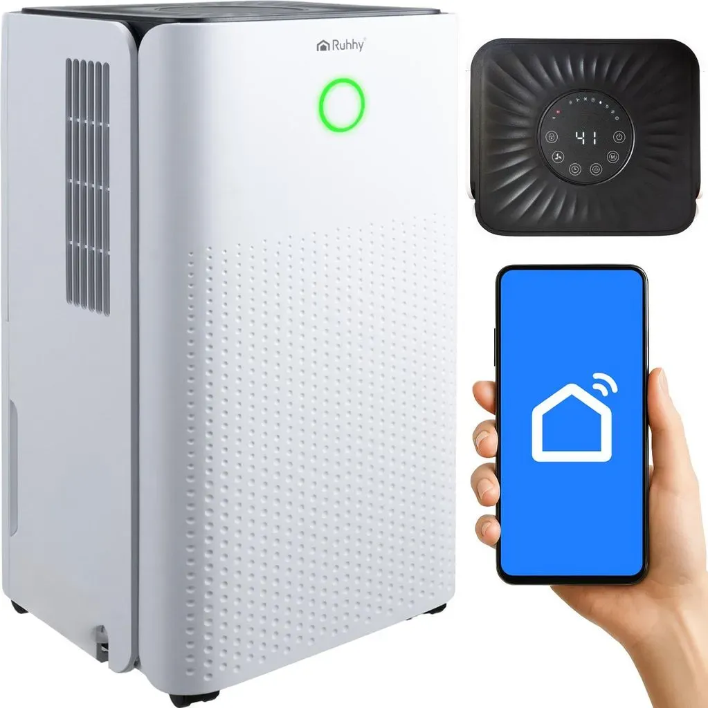 Verfügbarkeit: 4-5 Werktage - Kategorie: Luftentfeuchter - ruhhy - GTIN:5900779959538 - Der RUHHY Luftentfeuchter entfernt bis zu 12 L/24 h, arbeitet angenehm leise (38 dB) und bleibt dank 2-L Tank und Dauerablauf dauerhaft im Einsatz. Ideal zum Wäschetrocknen, nach Renovierungen und gegen Kondenswasser oder Gerüche. Mit Rollen & Griffen schnell von Raum zu Raum.Automatik mit Hygrostat effizient entfeuchten Der integrierte Hygrostat hält die gewünschte Luftfeuchte automatisch: Bei überschreitung startet der Betrieb, bei Erreichen des Ziels stoppt er Energie sparen leicht gemacht. Auto-Defrost schützt vor Vereisung, der waschbare Filter sorgt für saubere Luft. Optionaler Dauerablauf für kontinuierlichen Betrieb inklusive Schlauch.Der RUHHY-Luftentfeuchter sorgt im Wohn- und Kinderzimmer für spürbar angenehmes Klima: bis zu 12 L/Tag, leise 38 dB, automatischer Hygrostat-Modus gegen Kondenswasser & muffige Gerüche. Per Wi-Fi/App bequem vom Sofa steuern, Timer 024 h planen oder Wäsche trocknen im Dauerbetrieb kompakt, mobil und sofort einsatzbereit.Schlankes Format für jede Ecke: passt ins Schlafzimmer, Büro oder Keller, ohne Wege zu blockieren. Dank integrierter Griffe und Rollen schnell versetzt. 2-l Tank mit optionalem Dauerablauf, leise 38 dB ideal für Räume bis ca. 30 m2 TROCKENE RäUME IM HANDUMDREHEN Entfeuchtet bis zu 12 L/Tag, ideal für ca. 30 m2 (Wohnung, Keller, Hauswirtschaft, Renovierung, Wäsche). SMART STEUERN, WENIG ... Dieser Luftentfeuchter bietet eine solide Entfeuchtungsleistung von 12L/Tag und zusätzliche Luftreinigung durch Ionisation, was ihn zu einer guten Wahl für Allergiker macht. ![]() ![]() Turbionaire Senso N12 WIFI Luftentfeuchter 12 l/Tag, Luftreinigung durch Ionisation, APP, Wassertank 2L, Timer24 H, Für Räume von 20m2, Gegen Feuchtigkeit, Schimme, Trocknungsmodus, R290