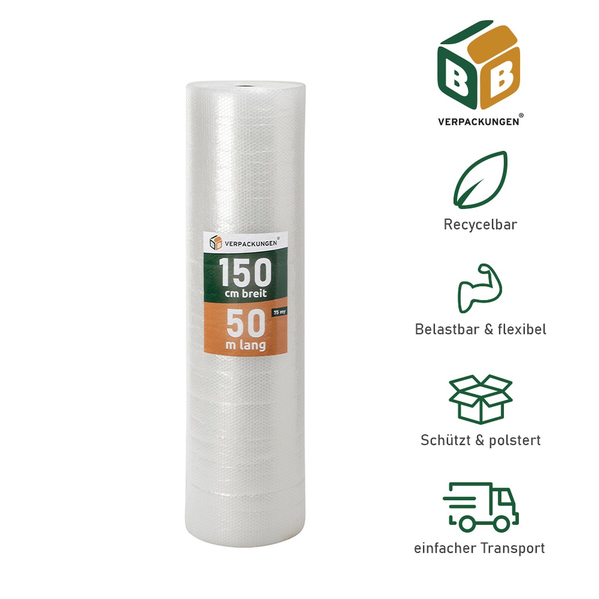 Polstermaterial (Folien, Flocken...) Büroausstattung - EAN:4008110988054 - Individuell einsetzbarDie herlitz Luftpolsterfolie bietet maßgeschneiderten Schutz für Ihre Produkte dank der individuell zuschneidbaren Eigenschaften und der hervorragenden Stoßdämpfung. Auch die Tatsache, dass sie wieder verwendbar ist, spricht für die Anschaffung dieser Folie.Perfekt für den Versand von kleinen ArtikelnMit einer Rolle von 5 Metern Länge ist diese transparente Luftpolsterfolie ideal für den Versand kleinerer Gegenstände geeignet.Zuverlässiger SchutzDie 2-lagige Noppenschicht sorgt für eine optimale Polsterung und schützt Ihre Artikel zuverlässig vor Beschädigungen während des Transports. So kommt Ihr Versandgut sicher an.Verlassen Sie sich auf die herlitz Luftpolsterfolie für einen sicheren Versand Ihrer Produkte und bestellen Sie die Rolle noch heute in unserem Online-Shop. - gefunden von Kelkoo Eine umweltfreundliche und robuste Option, die sich gut für den Versand und Umzug eignet und zudem nachhaltig ist. ![]() ![]() FESTPACK Luftpolsterfolie Rolle 50cm x 100m ? Noppenfolie für Versand, Verpackung & Umzug 100% recycelbar, reißfest & nachhaltig ? Bubble Wrap Polstermaterial Verpackungsmaterial Made in EU