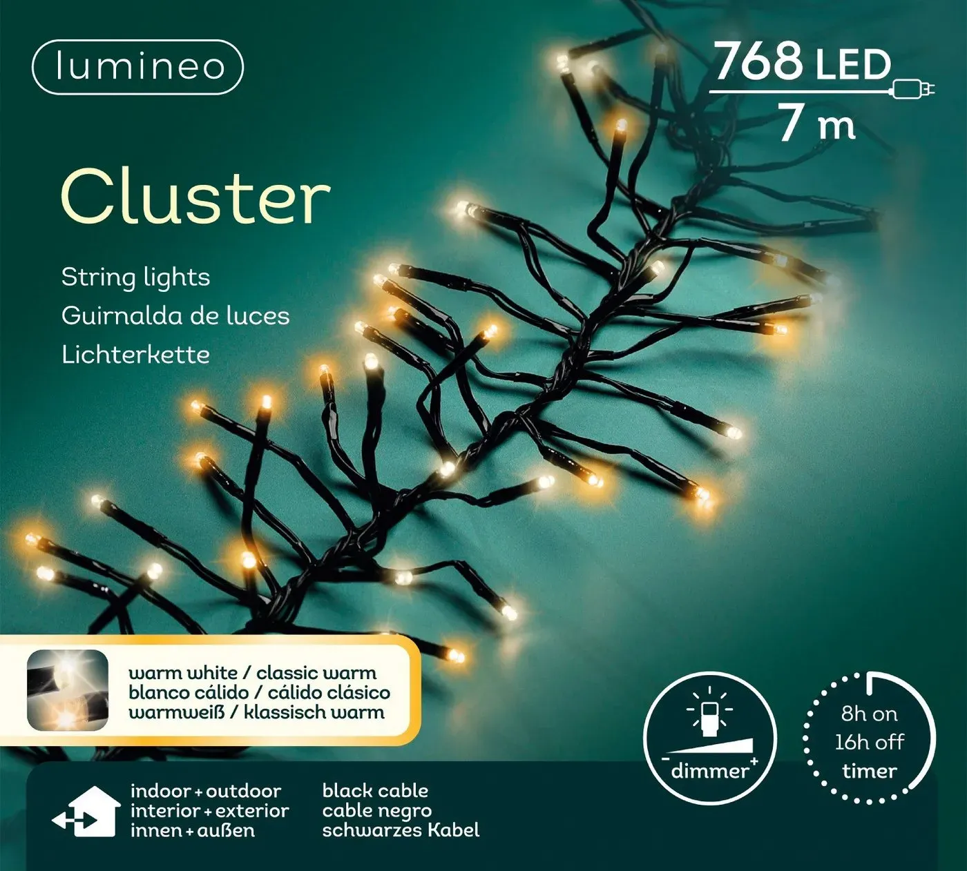 lieferbar-in 2-3 Werktagen bei dirLumineo LED-Lichterkette Lumineo Lichterkette CLUSTER 768 LED 7 m, warm weiß + klassisch warm, Dimmbar, 8h-Timer, Indoor/Outdoor, 2 Farben schwarz