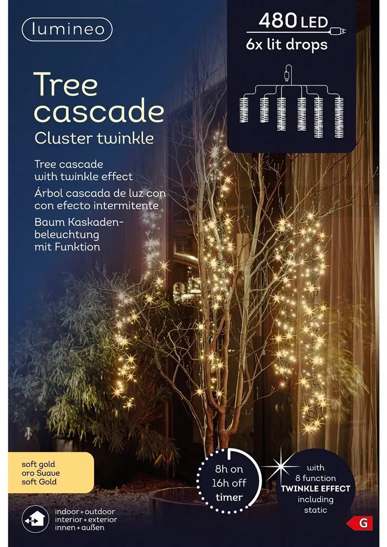 Kategorie: Lichterketten - Lumineo - GTIN:8720194634714 - Produktdetails Lichtfarbe , warm weiß + klassisch warm, Funktionen , Dimmbar, Technische Daten WEEE-Reg.-Nr. DE , 22765919, - 29,99 Euro bei OTTO - gefunden von billiger.de Eine weitere Baumbeleuchtung mit 480 LEDs und 6 Strängen in warmweiÃ?, die mit 8 Twinkle-Modi für eine zauberhafte Atmosphäre sorgt. ![]() ![]()