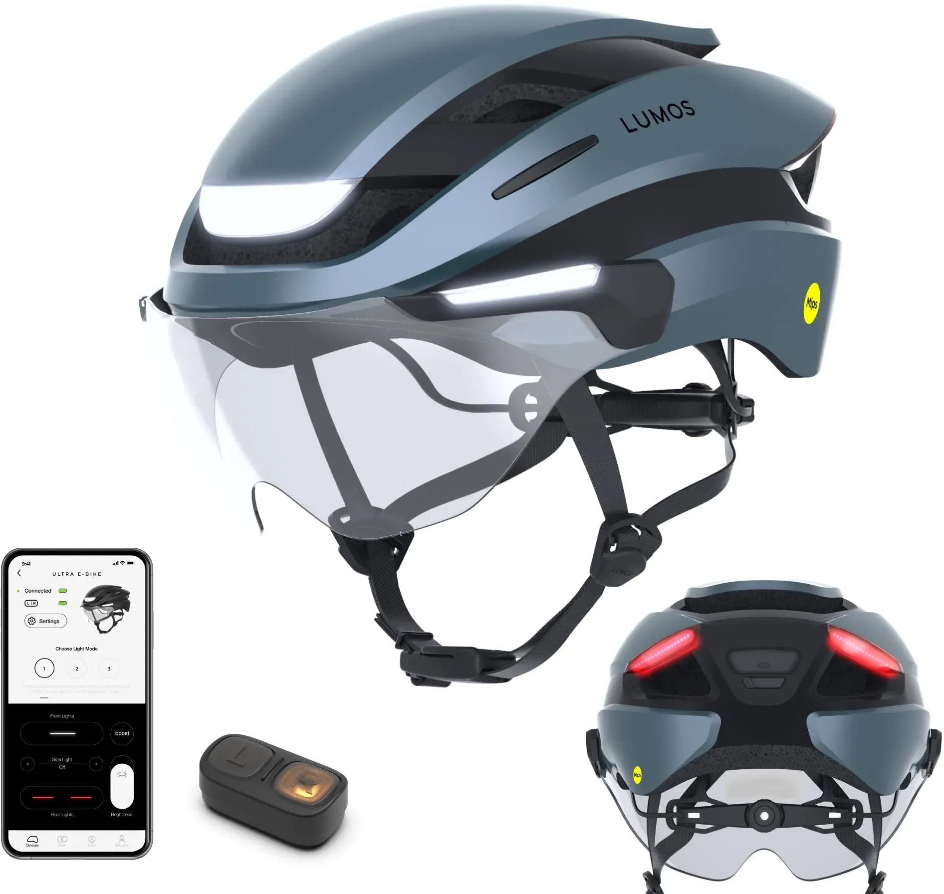 Kategorie: Fahrradhelme - Lumos - GTIN:0810059473447 - Light-as-air bike helmet: Weighing a mere 250g, this adult bike helmet offers a tailored, comfortable fit through our innovative FlexiFit Retention System. Ideal for both men and women, its design accommodates ponytails for unmatched comfort on the road. MIPS for Advanced Safety: Opt for the MIPS version to elevate your road bike helmet's safety features. MIPS technology is designed to protect against rotational forces during unforeseen crashes. Sleek Eyewear Storage: Our bicycle helmet comes with a built-in OptiGrip Sunglasses Port that securely stores your high-end eyewear, seamlessly integrating with your riding experience. The Ultimate Gift: As part of the Lumos Smart Safety System, this road bike helmet is an unbeatable gift for adult riders. Whether you're looking for men's bike helmets or women's bike helmets, this one checks all the boxes for road cycling and daily commuting needs. - 63,09 Euro bei Amazon Marketplace Sports - gefunden von billiger.de Ein zertifizierter E-Bike Smart-Helm mit Visier und App-Steuerung für maximale Funktionalität. ![]() ![]() Lumos Ultra E-Bike Smart-Helm | NTA 8776 Zertifiziert | LED-Front- & Rücklichter | Einziehbares Visier | App-Steuerung | Für E-Bike, Scooter, Radfahren | Erwachsene, Männer, Frauen