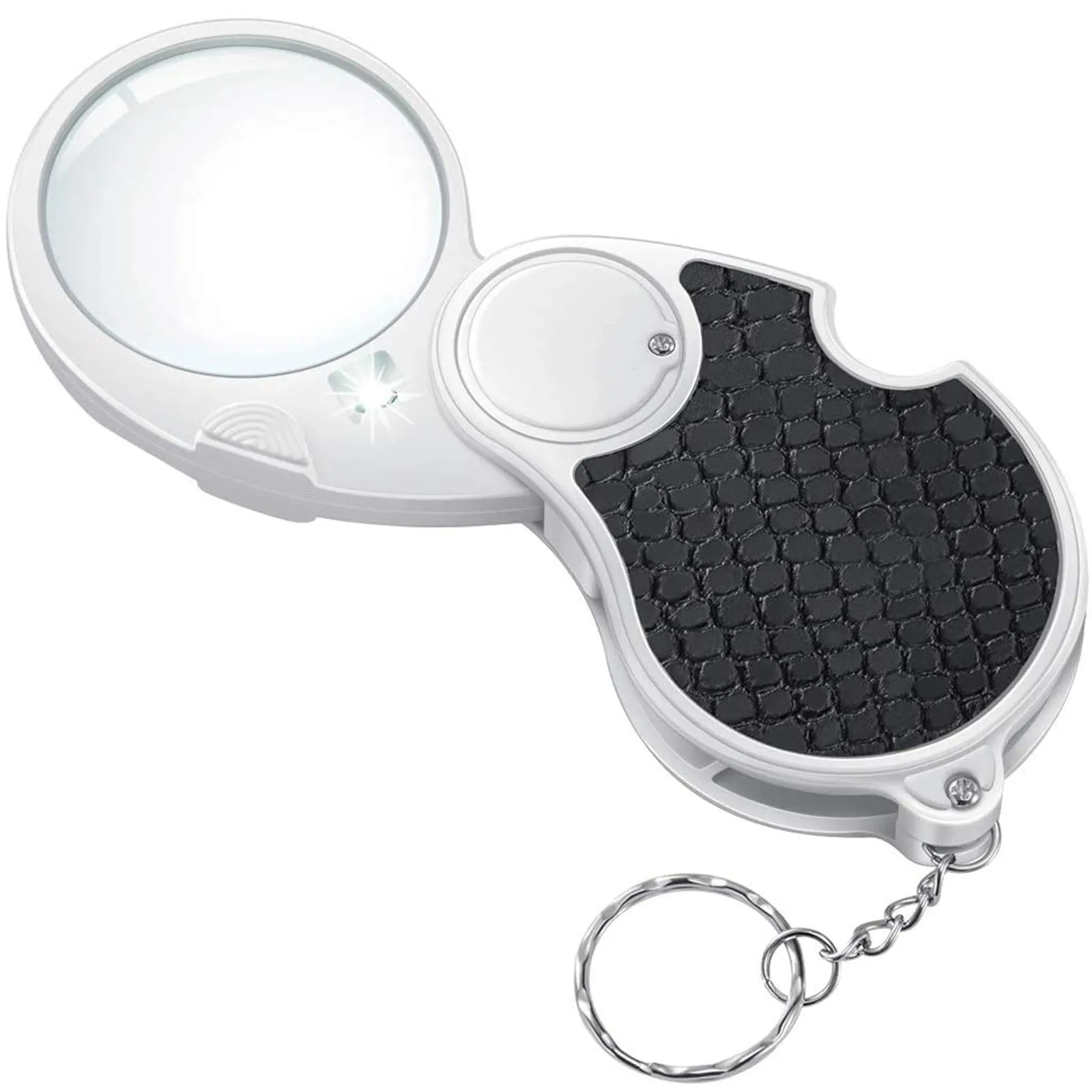 Auf Lager Versand durch AmazonLupe mit Licht, beleuchtete Lupe, 5-fache Handtaschenlupe Kleine beleuchtete, zusammenklappbare, handbeleuchtete Lupe zum Lesen von Münzen Hobby Travel - Fliplinse mit 45 mm Durchmesser