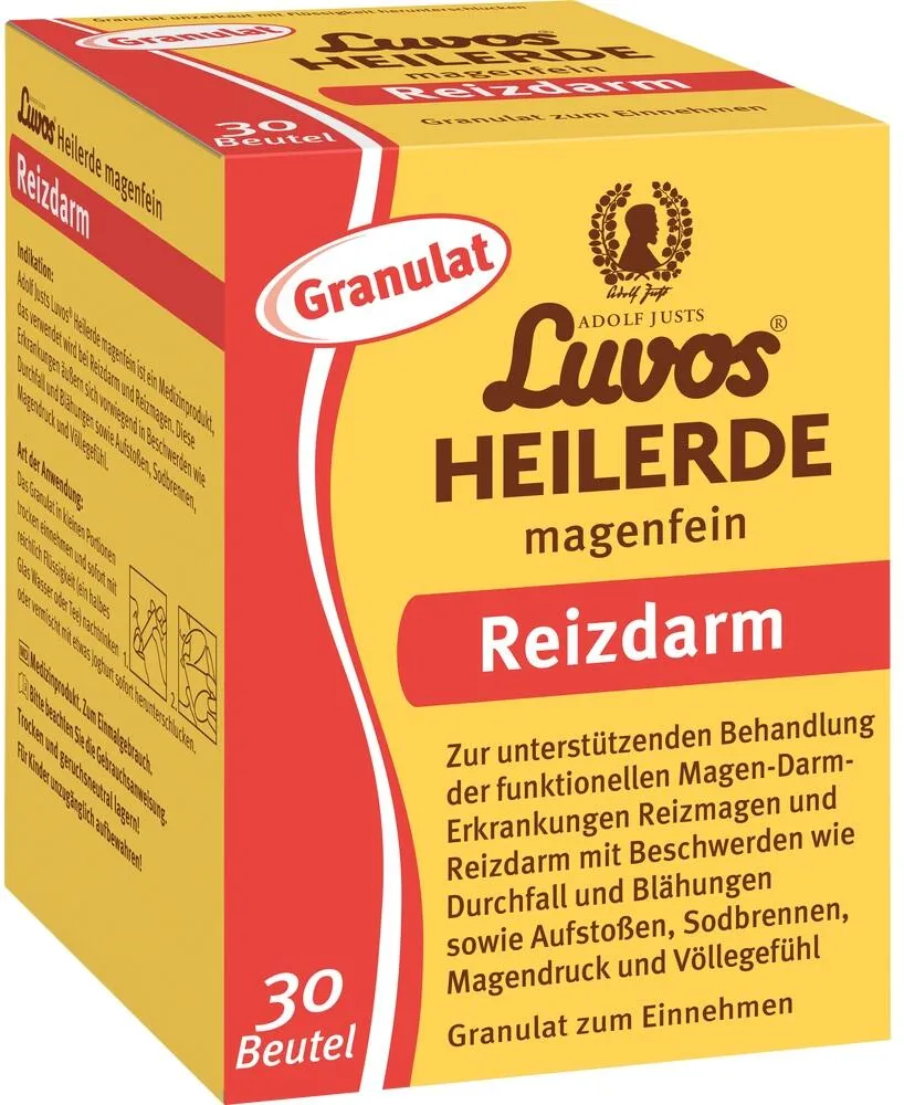 Zustand: Neu - 25,89 € / kg - Verdauung & Übelkeit Medikamente bei Verdauungsstörungen & Übelkeit - Luvos Heilerde-Gesellschaft Luvos Just GmbH & Co. KG - 10010601 _SML - EAN: 4150097231835 EAN: 4005120411015 - WIE KANN LUVOS-HEILERDE MAGENFEIN BEI REIZDARM UND REIZMAGEN HELFEN? Luvos-Heilerde ist ein bewährtes Naturheilmittel, das bei Reizdarm-Symptomen wie Durchfall und Blähungen helfen kann. Sie lindert auch Reizmagen-Symptome wie Aufstoßen, Sodbrennen oder Magendruck. Luvos-Heilerde reguliert die Magen-Darm-Funktion. Wenn keine organische Ursache für Verdauungsprobleme gefunden wird, kann Luvos-Heilerde eine sanfte und natürliche Lösung sein. Ideal zur Unterstützung bei Reizdarm und Reizmagen. WIE WIRKT LUVOS-HEILERDE MAGENFEIN? Luvos-Heilerde unterstützt die Magen-Darm-Funktion und lindert Symptome wie Blähungen und Durchfall. Ihre feine Struktur ermöglicht eine hohe Bindungsfähigkeit, die schädliche Stoffe im Verdauungstrakt binden und so die Beschwerden lindern kann. Die natürliche Heilerde hat auch eine hohe Säurebindungs-Kapazität. Damit kann sie überschüssige Magensäure binden. Für die besten Ergebnisse wird eine angepasste Ernährung empfohlen. STUDIEN BELEGEN WIRKSAMKEIT: Dass Luvos-Heilerde bei Reizdarm hilft, ist wissenschaftlich nachgewiesen. Eine Untersuchung an der Charité Berlin* zeigte, dass Luvos-Heilerde die Reizdarm-Symptome lindern konnte. Reizdarm-Patienten, die zusätzlich zu ihrer Behandlung Luvos-Heilerde einnahmen, litten seltener unter ... Dieses Granulat in Beuteln ist eine beliebte Wahl und bietet eine bequeme Anwendung. ![]() ![]() Luvos Heilerde magenfein Granulat - Naturheilmittel gegen Reizdarm & Reizmagen - Bei Symptomen wie Durchfall, Blähungen, Aufstoßen, Sodbrennen, Magendruck - 30 Beutel