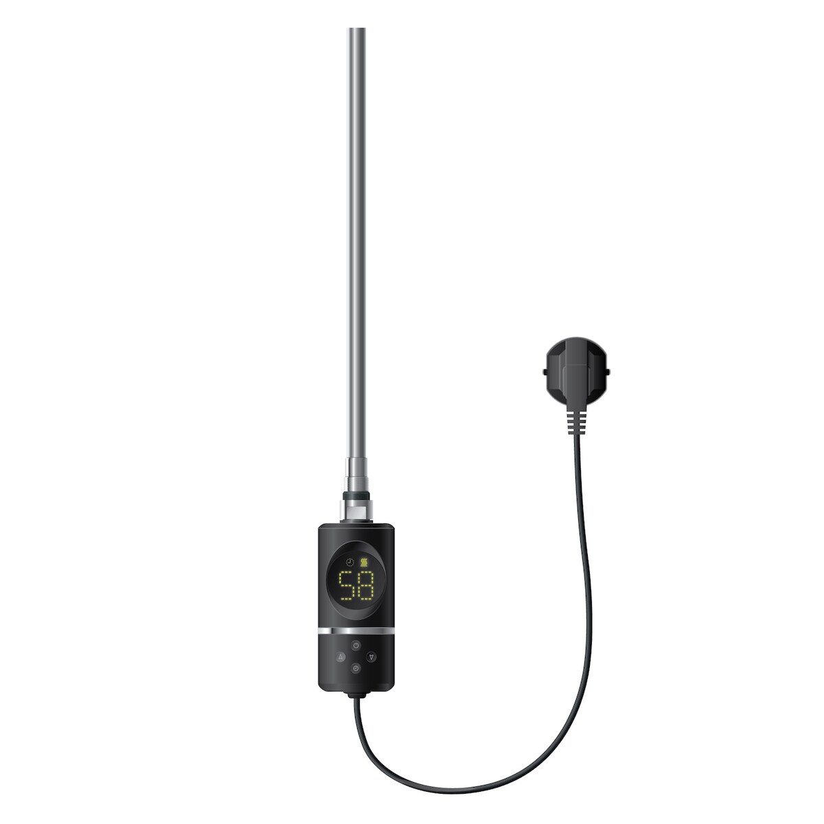 lieferbar-in 4-5 Werktagen bei dirLuxeBath Heizstab Heizelemente für Badheizkörper mit Thermostat und LCD Bildschirm, Elektroheizstab mit Stecker Chrom Heizpatrone Heizelemente 900W silberfarben