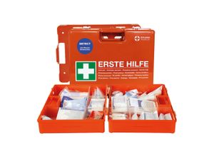 Garten Balkon Wohnen Haus Garten - - Eigenschaften: Inhalt nach DIN 13 164 zzgl. Spezialausstattung Schlag- und bruchfester Verbandkoffer aus hochwertigem ABS-Kunststoff Mit GRAMM Qualitätsverbandstofffüllung aus zertifizierter Produktion Alle Inhalte mit Illustration zur einfacheren Handhabung und Identifikation versehen Mehrsprachig bedruckt Staub- und wassergeschützt durch rundumlaufende Gummidichtung Individuell verstellbare Inneneinteilung Verschluss verplombbar Lieferumfang: 1 Heftpflaster, non-woven, 2,5 cm x 5 m, mit Aussenschutz 1 ACTIOMEDIC Kombipflaster-Set für DIN 13 164/ 14-teilig 1 Verbandpäckchen steril, DIN 13 151-K (klein), 60 x 80 mm 2 Verbandpäckchen steril, DIN 13 151-M (mittel), 80 x 100 mm 1 Verbandpäckchen steril, DIN 13 151-G (groß), 100 x 120 mm 1 Verbandtuch steril DIN 13 152-BR, 400 x 600 mm 1 Verbandtuch steril DIN 13 152-A 600 x 800 mm 6 Kompressen steril, 100 x 100 mm 1 Rettungsdecke, gold / silber, 210 x 160 cm 2 Fixierbinden DIN 61 634, 6 cm x 4 m 3 Fixierbinden DIN 61 634, 8 cm x 4 m 2 Dreiecktücher DIN 13 168, weiß, 96 x 96 x 136 cm 2 Feuchte Reinigungstücher 1 Schere DIN 58 279 - B 190, kniegebogen, mit Griff mit Kunststoffübezug 4 Einmalhandschuhe nach DIN EN 455 1 Anleitung zur Ersten Hilfe, mehrsprachig 1 Inhaltsverzeichnis, mehrsprachig 1 Rettungsdecke 1 Schutzbrille 1 Paar säurefeste Handschuhe 1 Augenspüllösung 2 Einwegschürzen Weitere Informationen entnehmen Sie bitte dem Leitfaden für Erste Hilfe Ausstattungen. (415.035.08400) - ... Ein robuster Betriebsverbandkoffer nach DIN 13 169, perfekt für den Einsatz in Unternehmen. ![]() 342032 / Contorion Gramm Medical Betriebsverbandlkoffer MULTI detect DIN 13 169 (418.035.00410)