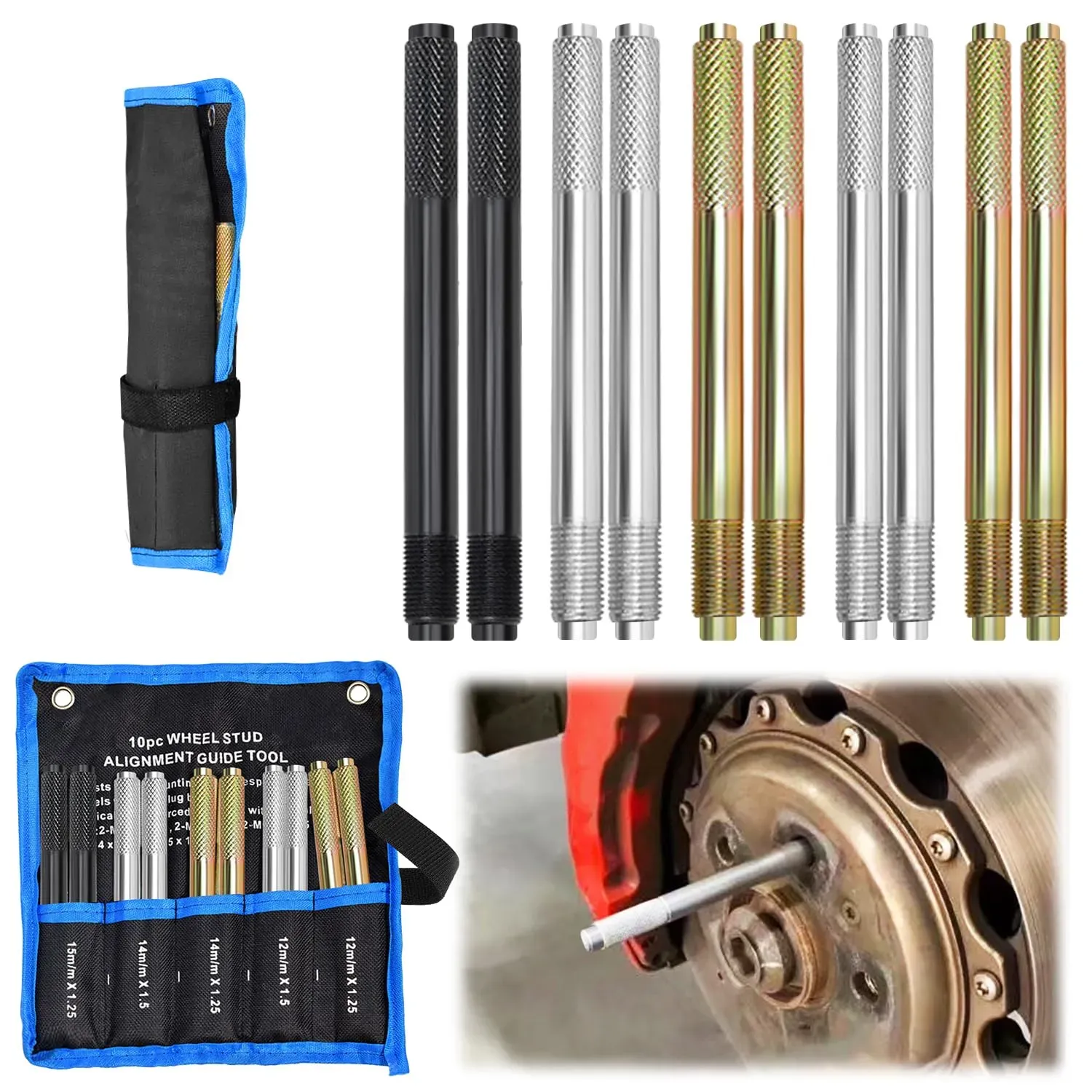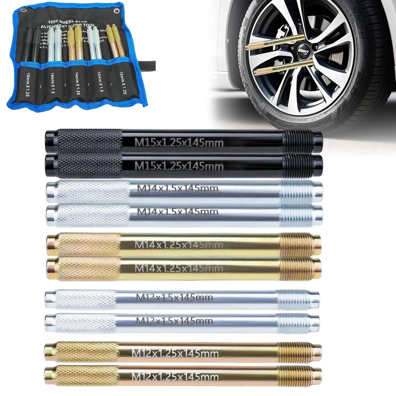 Gewöhnlich versandfertig in 6 bis 7 TagenAkozon Reminnbor Radaufhängungsstiftsatz Edelstahl Auto Radmontagehilfe Reifenwechselwerkzeug M12x1.25/M12x1.5 Universal(M12*1.5)
