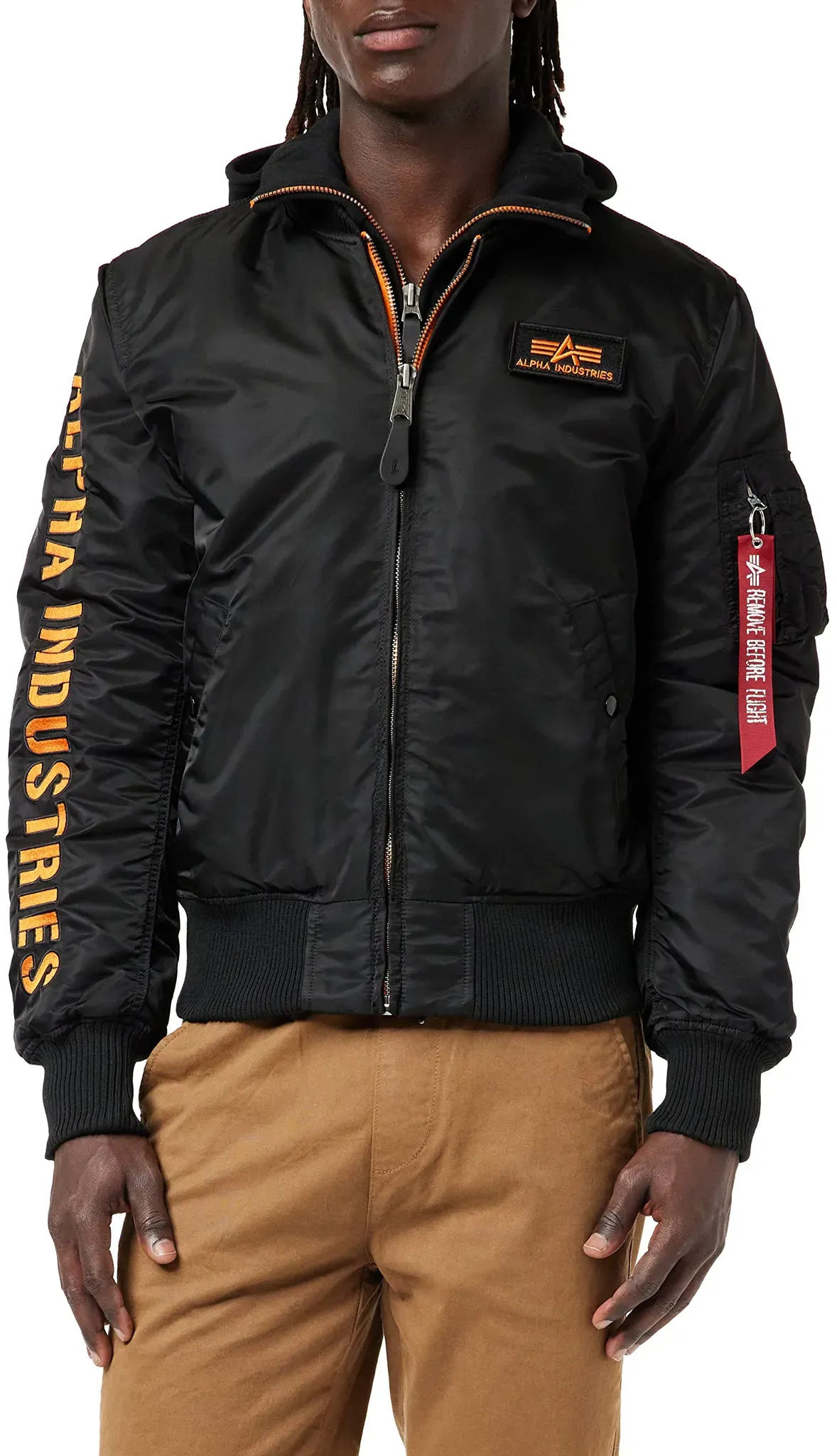 1 Händlerangebote bei billiger.de - Kategorie: Herrenjacken - Alpha Industries - Die MA-1 D-Tec SE Fliegerjacke von Alpha Industries ist ein echter Hingucker. Der große Stick auf dem rechten ärmel sowie der typische Flight Tag auf dem linken ärmel stechen besonders heraus. Je nach Belieben kann der Sweat-Einsatz mit Kapuze herausgenommen werden. Für eine optimale Passform und Schutz vor Wind und Kälte sorgen die elastischen Rippstrickbündchen an Bund und ärmelabschluss. Ob lässig mit Kapuze oder klassisch als Fliegerjacke, mit der MA-1 machst du immer eine gute Figur.wattierte Fliegerjackegroßer Alpha Industries Stick auf dem rechten OberarmFlight Tag auf dem linken Oberarm Armbüro mit StiftehalterLogopatch auf der Brustherausnehmbarer Sweat-Einsatz mit KapuzeRippstrickbündchen an Bund und ärmelabschlussOberstoff: 100% NylonFutter: 100% NylonWattierung: 100% PolyesterKapuze: 80% Baumwolle, 20% PolyesterMaschinenwäsche - GTIN:4260384844652 Diese Alpha Industries Jacke in Schwarz/Orange in XL ist eine auffällige und modische Option für alle, die Farbe bekennen möchten. ![]() ![]() Alpha Industries Ma-1 D-tec Se Jacke Black / Orange XL