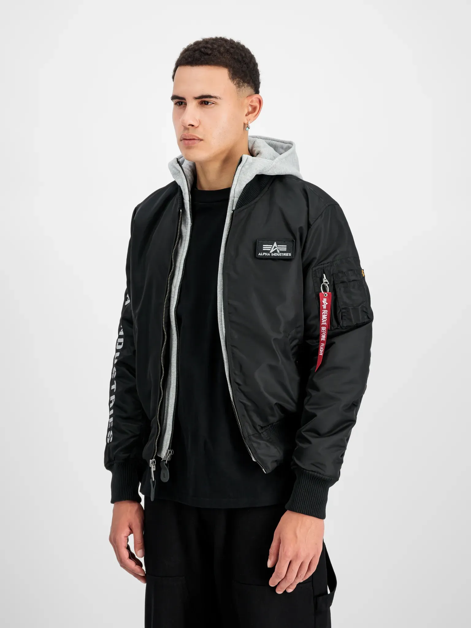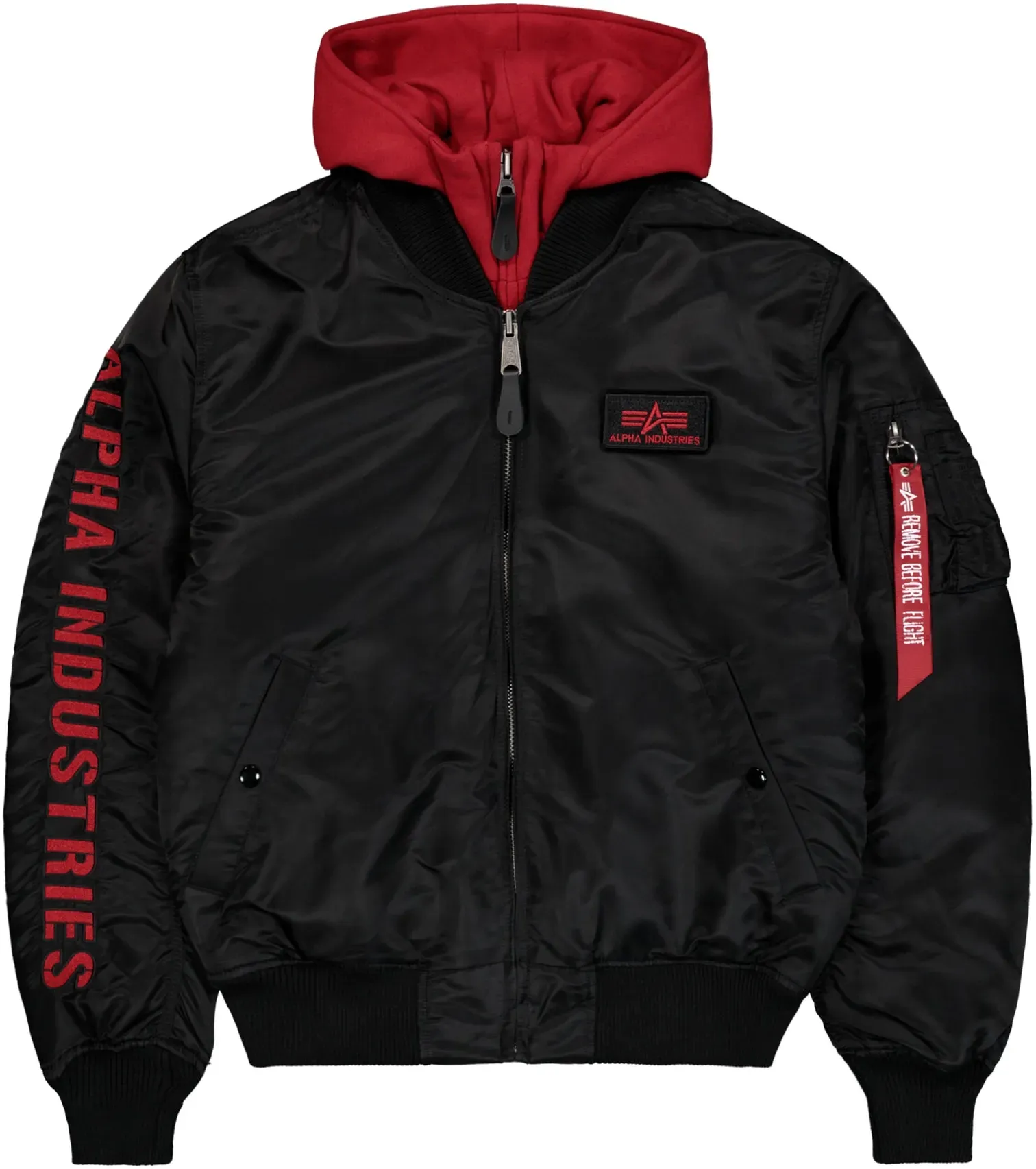 1 Händlerangebote bei billiger.de - Kategorie: Herrenjacken - Alpha Industries - Die MA-1 D-Tec SE Fliegerjacke von Alpha Industries ist ein echter Hingucker. Der große Stick auf dem rechten ärmel sowie der typische Flight Tag auf dem linken ärmel stechen besonders heraus. Je nach Belieben kann der Sweat-Einsatz mit Kapuze herausgenommen werden. Für eine optimale Passform und Schutz vor Wind und Kälte sorgen die elastischen Rippstrickbündchen an Bund und ärmelabschluss. Ob lässig mit Kapuze oder klassisch als Fliegerjacke, mit der MA-1 machst du immer eine gute Figur.wattierte Fliegerjackegroßer Alpha Industries Stick auf dem rechten OberarmFlight Tag auf dem linken Oberarm Armbüro mit StiftehalterLogopatch auf der Brustherausnehmbarer Sweat-Einsatz mit KapuzeRippstrickbündchen an Bund und ärmelabschlussOberstoff: 100% NylonFutter: 100% NylonWattierung: 100% PolyesterKapuze: 80% Baumwolle, 20% PolyesterMaschinenwäsche - GTIN:4260309790781 Diese Alpha Industries Jacke in Schwarz/Rot in 3XL ist eine der größten verfügbaren Größen und bietet maximalen Komfort und Stil. ![]() ![]() Alpha Industries MA-1 D-Tec SE Fliegerjacke black/red, Größe 3XL