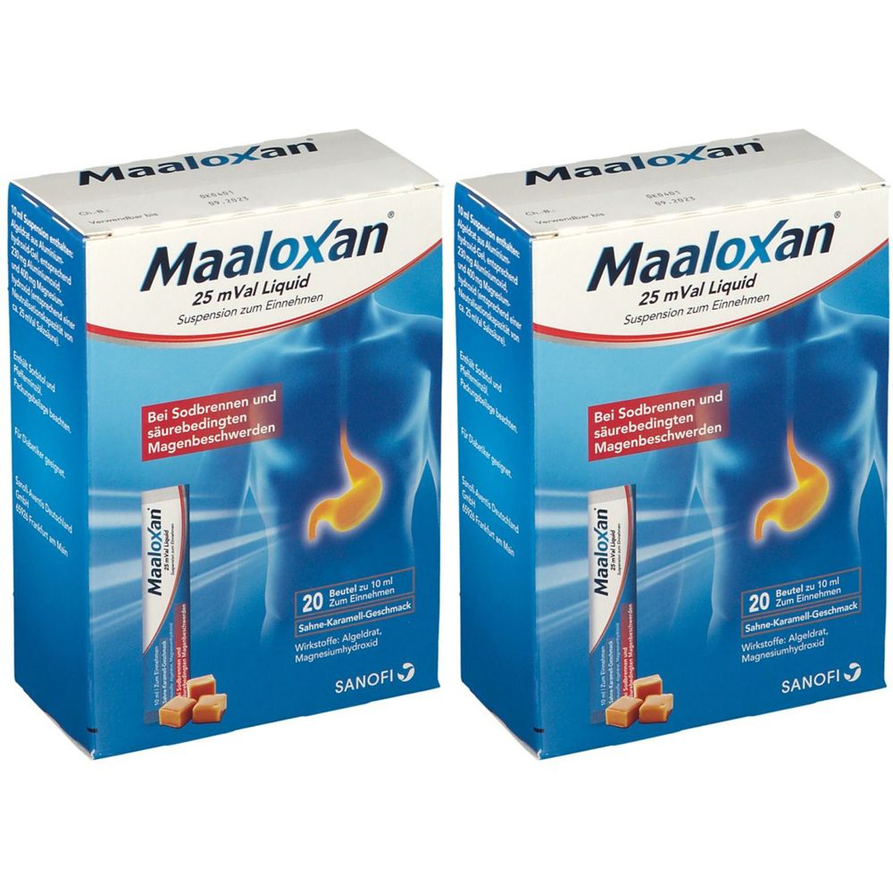 Der angezeigte Preis könnte seit dem letzten Update gestiegen sein - EAN: 4150081127564 - Maaloxan® 25 mVal Suspension Wer einmal Sodbrennen hatte, erkennt die Symptome sofort: Ein brennendes Gefühl in Oberbauch und Brustraum, saures Aufstoßen, Magendruck und Magenschmerzen. Häufig treten die Beschwerden nach dem Essen auf. Egal, welcher... - Zustand: NEW - bei SHOP APOTHEKE - gefunden von Buycentral ![]() Maaloxan 25 mVal Liquid Doppelpack 2x20x10 ml Suspension