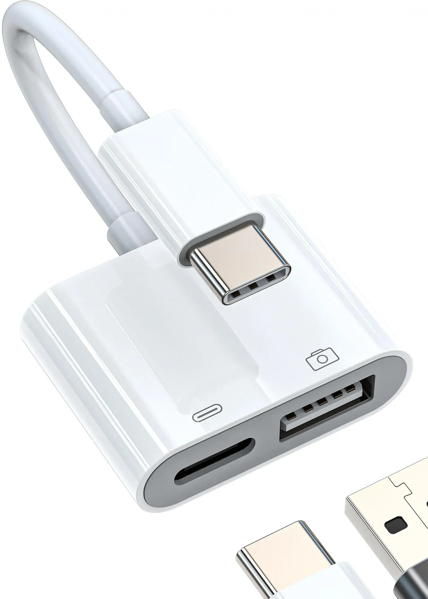 Auf Lager Versand durch AmazonSeminer USB C OTG Adapter, Typ C 100W PD Ladegerät und USB 3.0 Splitter Ladegerät Kompatibel für iPhone 15 Pro Max, Google TV Chromecast 2020, MacBook, Samsung Galaxy S22/S23