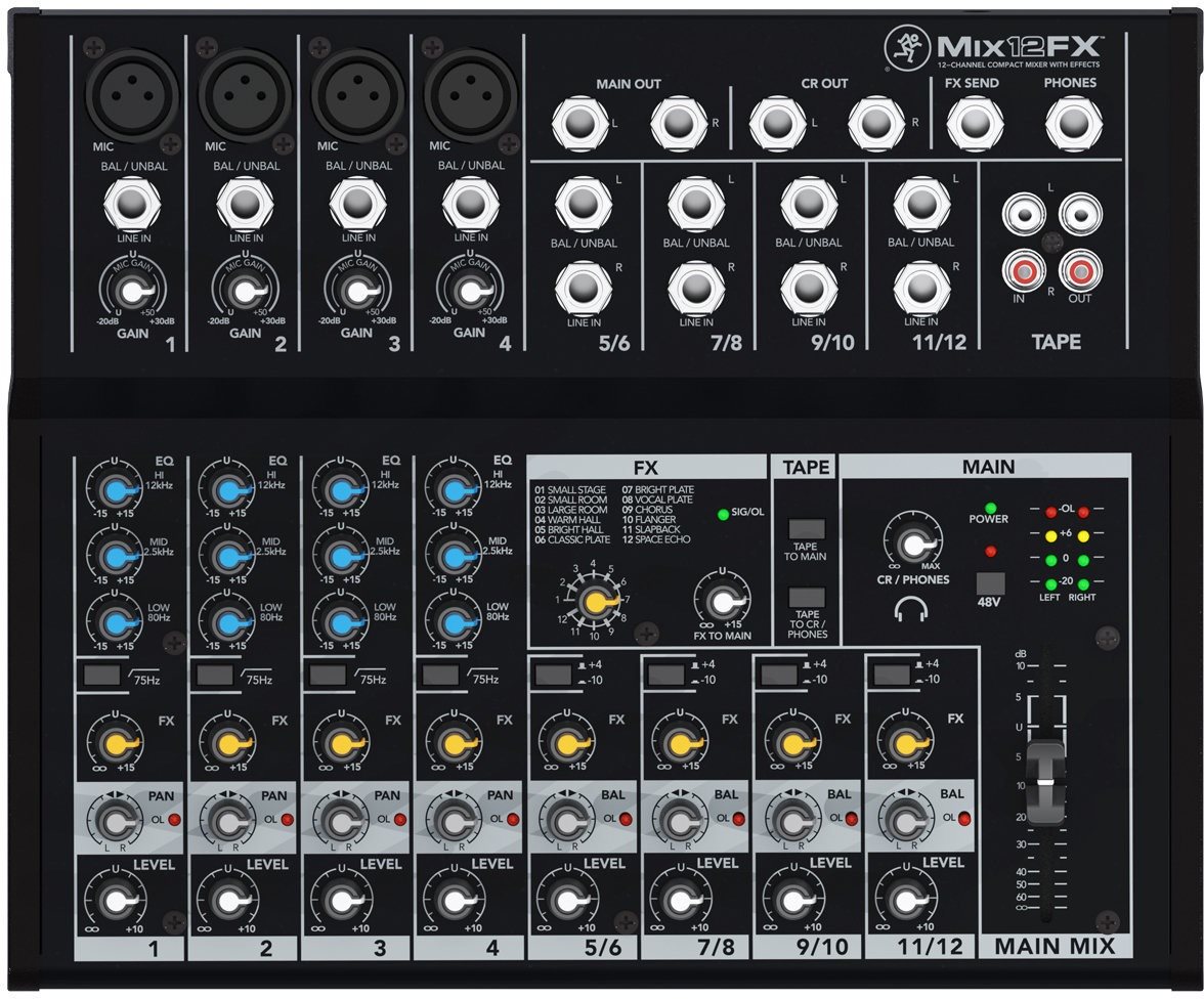 5 Händlerangebote bei billiger.de - Kategorie: Mischpulte - MACKIE - Zuverlässiger und kompakter 12-Kanal Mixer mit Effekteinheit zu einem erschwinglichen Preis. Der Mixer ist sehr gut transportabel, kann für verschiedene Zwecke genutzt werden und verfügt über sehr dynamische Klangregelungsmöglichkeiten. Es stehen vier Mic-/Line-Eingänge bereit, die ein Audio-Signal in Studioqualität liefern. Außerdem ist der Mackie mit weiteren vier Stereo-Line-Eingängen und zwölf hervorragend klingenden Effekten ausgestattet. - GTIN:0663961045062 ![]() ![]() MACKIE Mix12FX