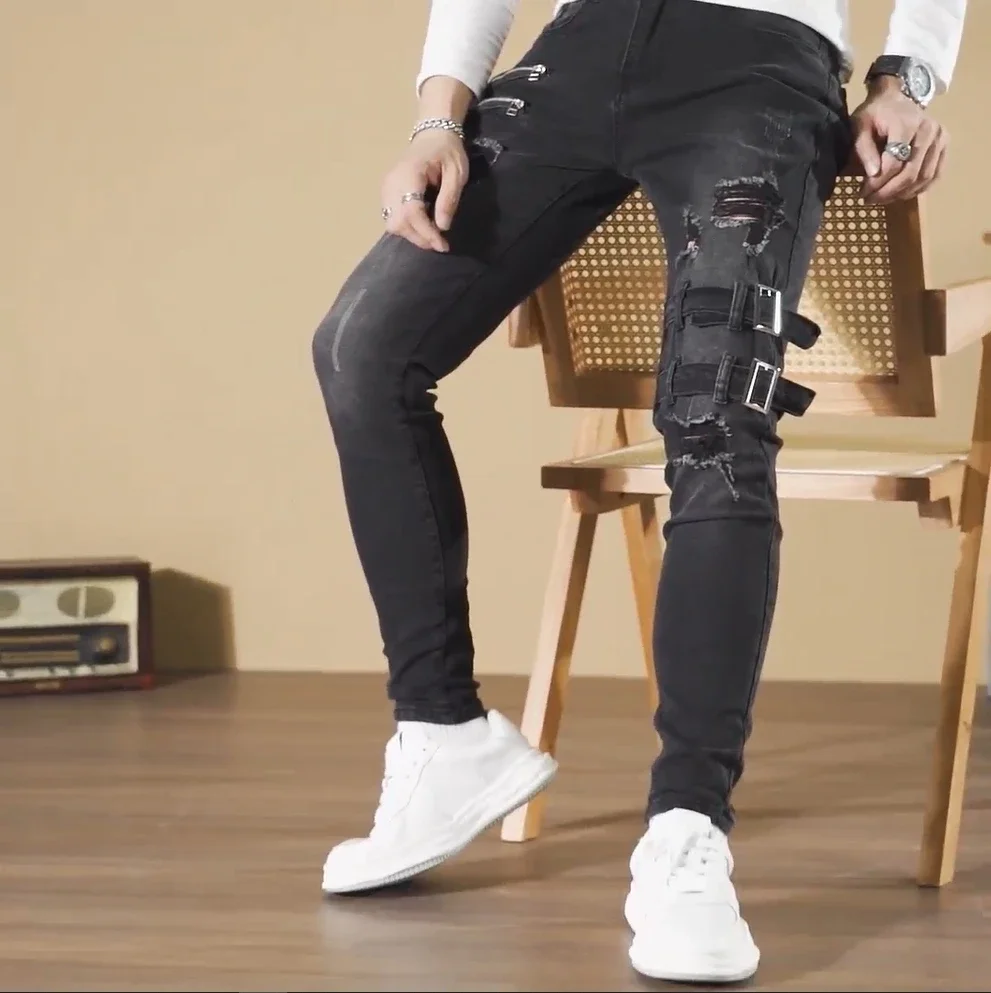NONE - Gerade Jeans Männer Punk Skinny Denim Hosen Frühling Sommer Boyfriend-Jeans Streetwear Zipper Slim Fit Schwarz Goth Hosen - bei de.aliexpress.com - aus Yadore Produktdaten Für einen niedrigen Preis erhalten Sie hier eine Skinny Jeans mit Ripped-Details und Stretch-Anteil, ideal für Streetwear. ![]() Männer Skinny Bleistift Hosen Ripped Loch Stretch Jeans Distressed Washed Mid Taille Denims Männlich 2024 Streetwear Knöchel Länge Hosen